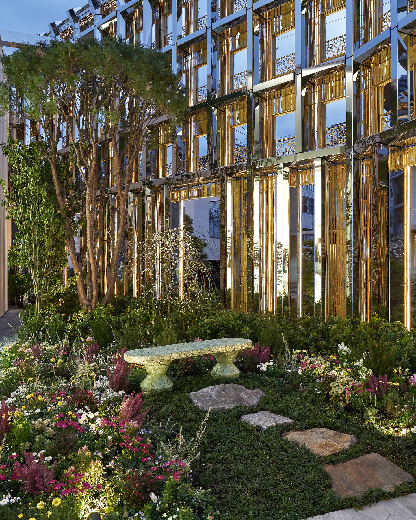 植物に囲まれた空間は瞑想的な散策を誘います。西畠清順によるコンセプチュアルな庭園、テラス、輝くガラスの鯉が泳ぐ池、そしてフラワーアーティストの東信が手掛けたブティック内の緑のオアシスは、日本が大切にする伝統を讃えます。この類まれな体験をさらに深めるため、岩元航大が芸術作品として構想した茶室では、静かな至高のひとときが約束されます。クリスチャン・ディオールの自然の美しさへの愛に敬意を表し、数えきれないほどの植物が生き生きと息づく、1,800平方メートルを超える壮大な楽園が広がります。