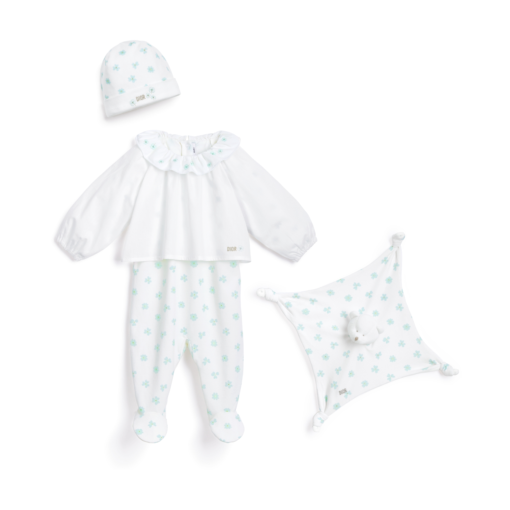 各アイテムにペールゴールドトーンのメタリックヤーンで施したDior刺繍