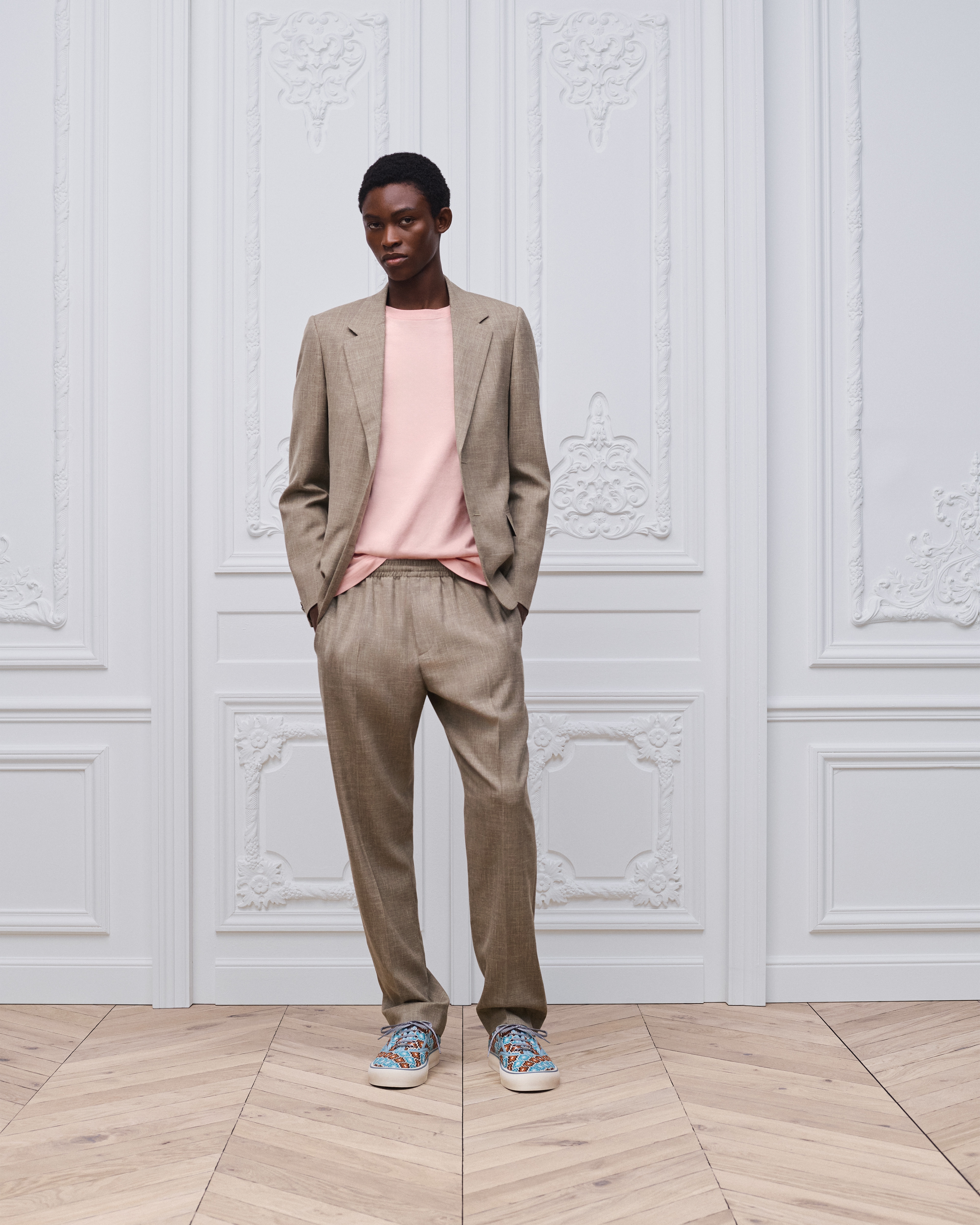 モデルの身長は188cm、着用サイズはサイズ48 (フランス) です。