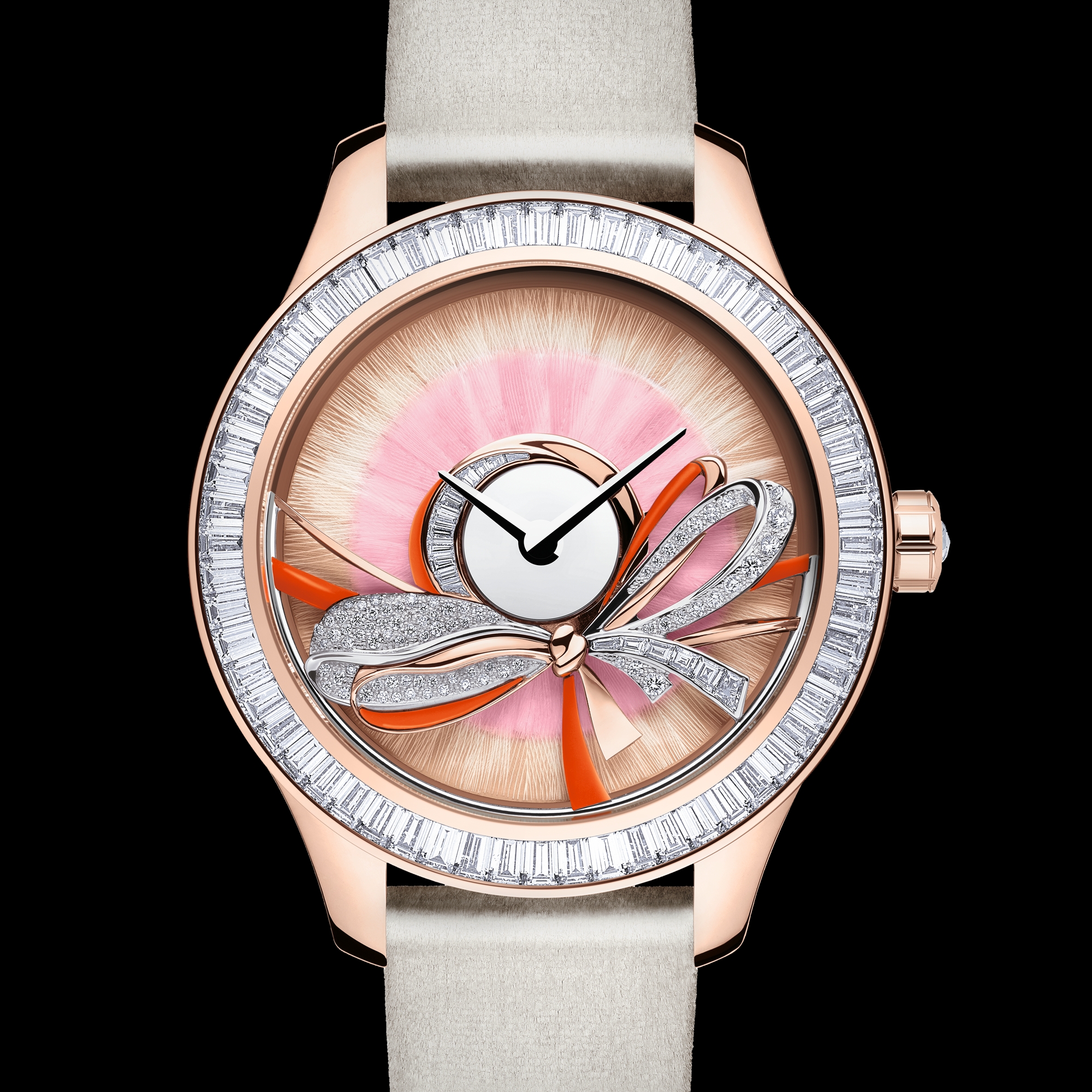 ホワイト & ピンクのフェザーマーケトリーの文字盤