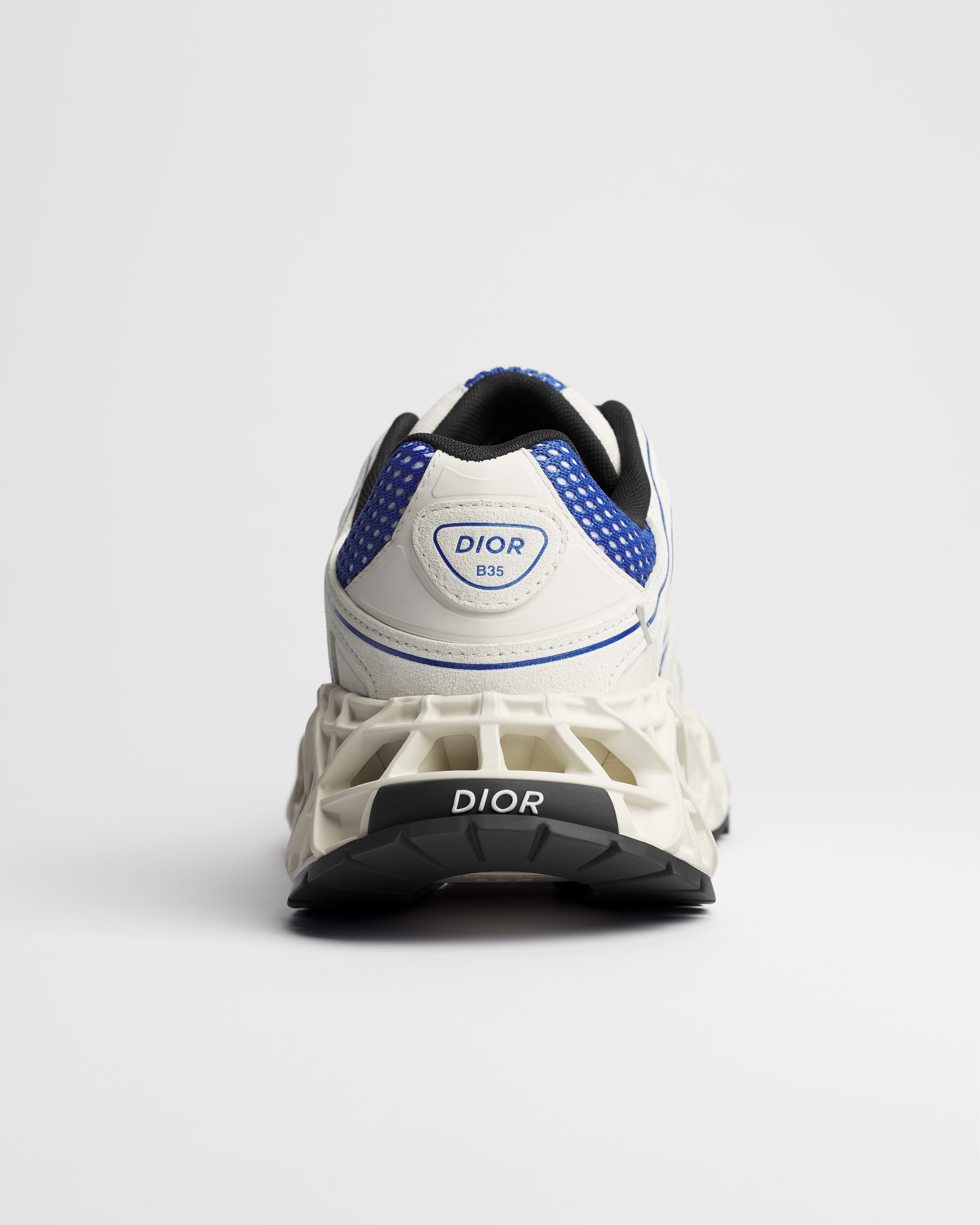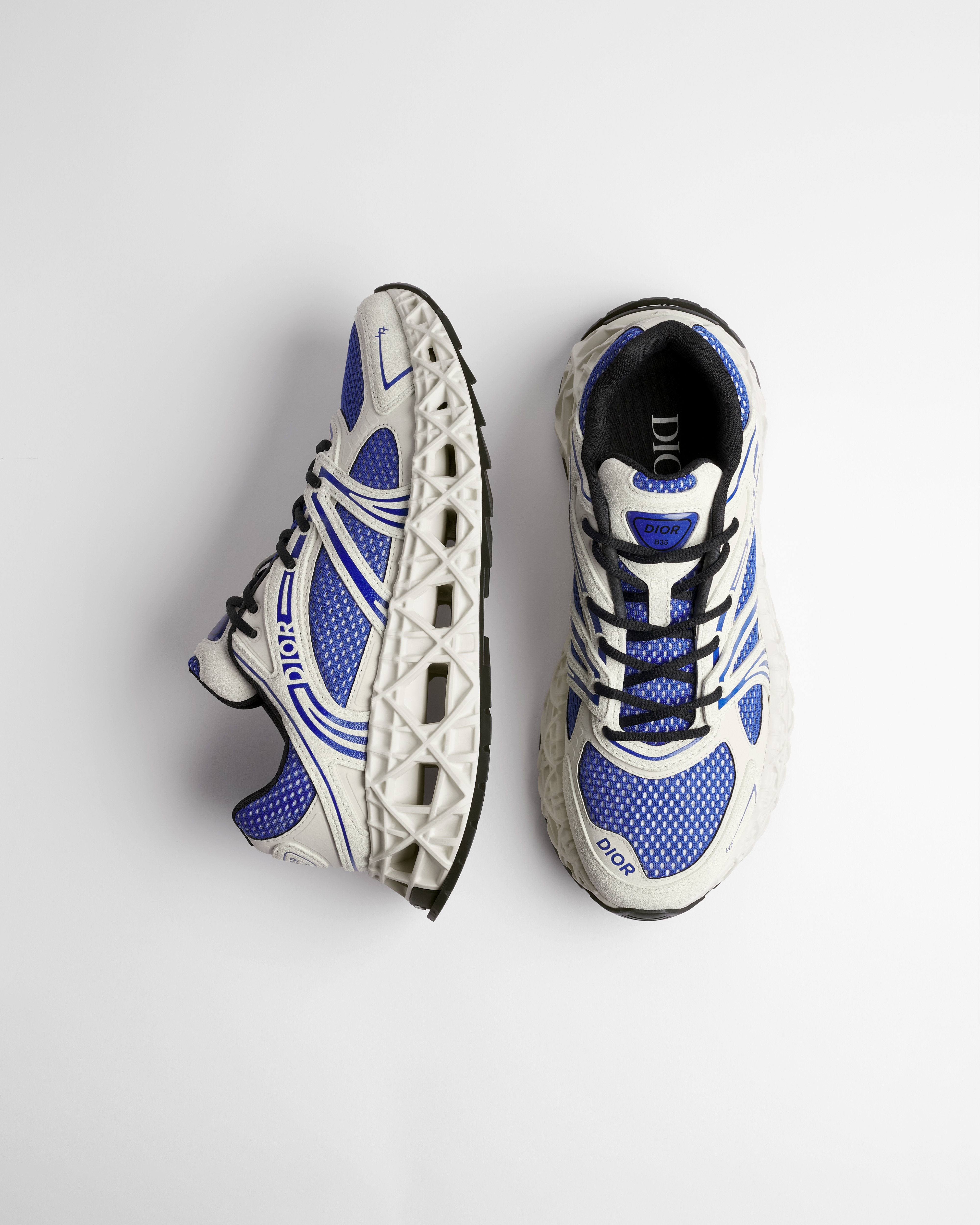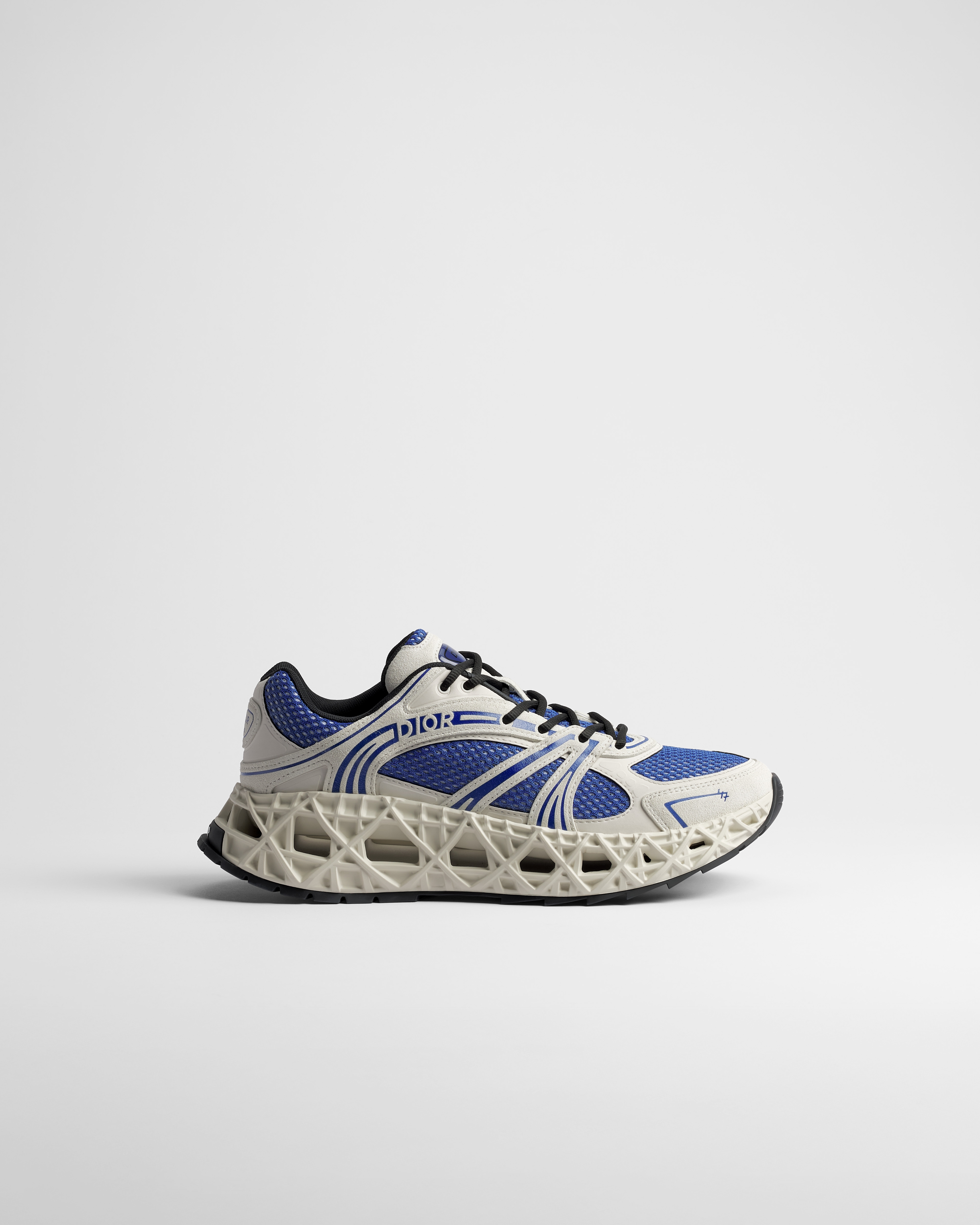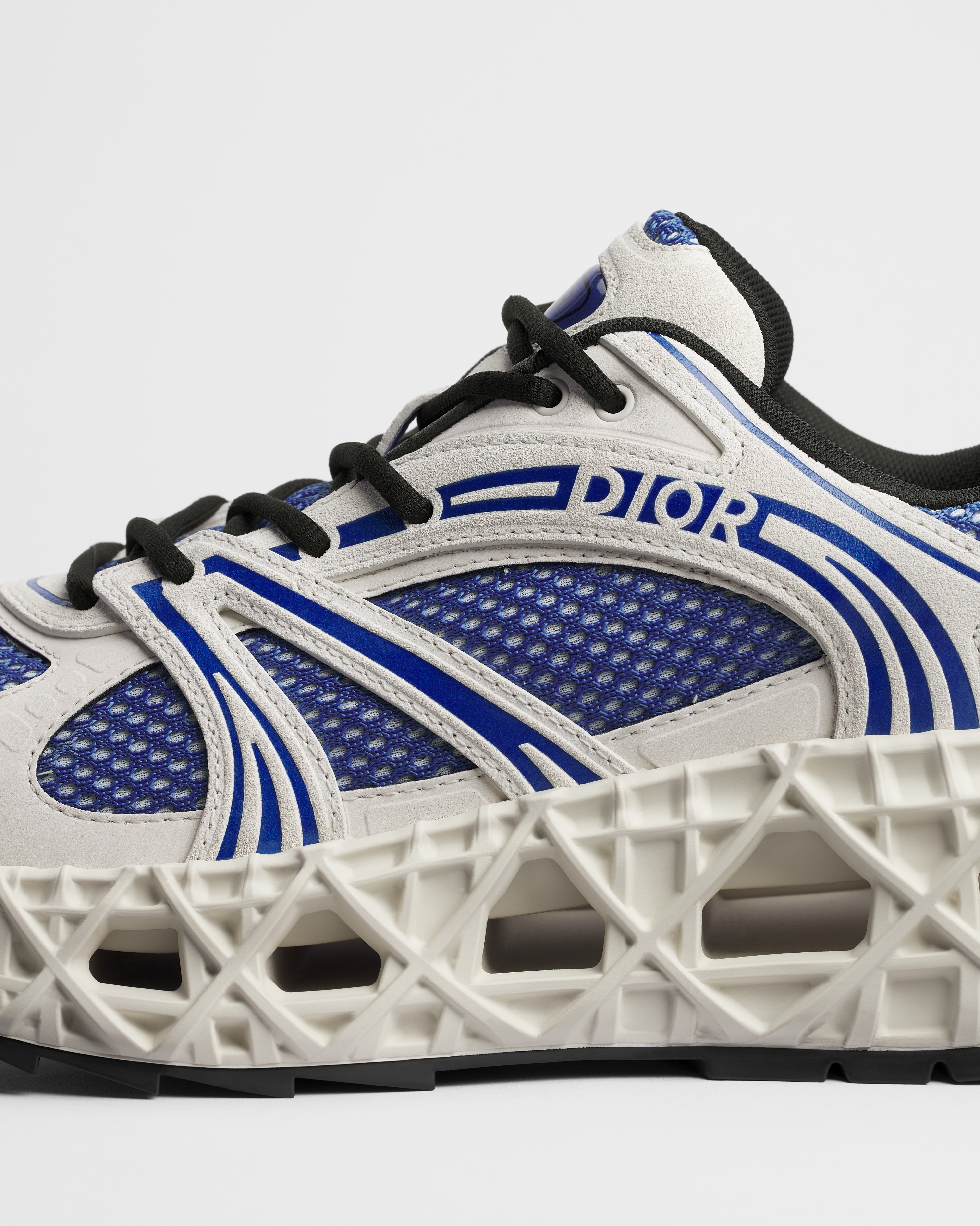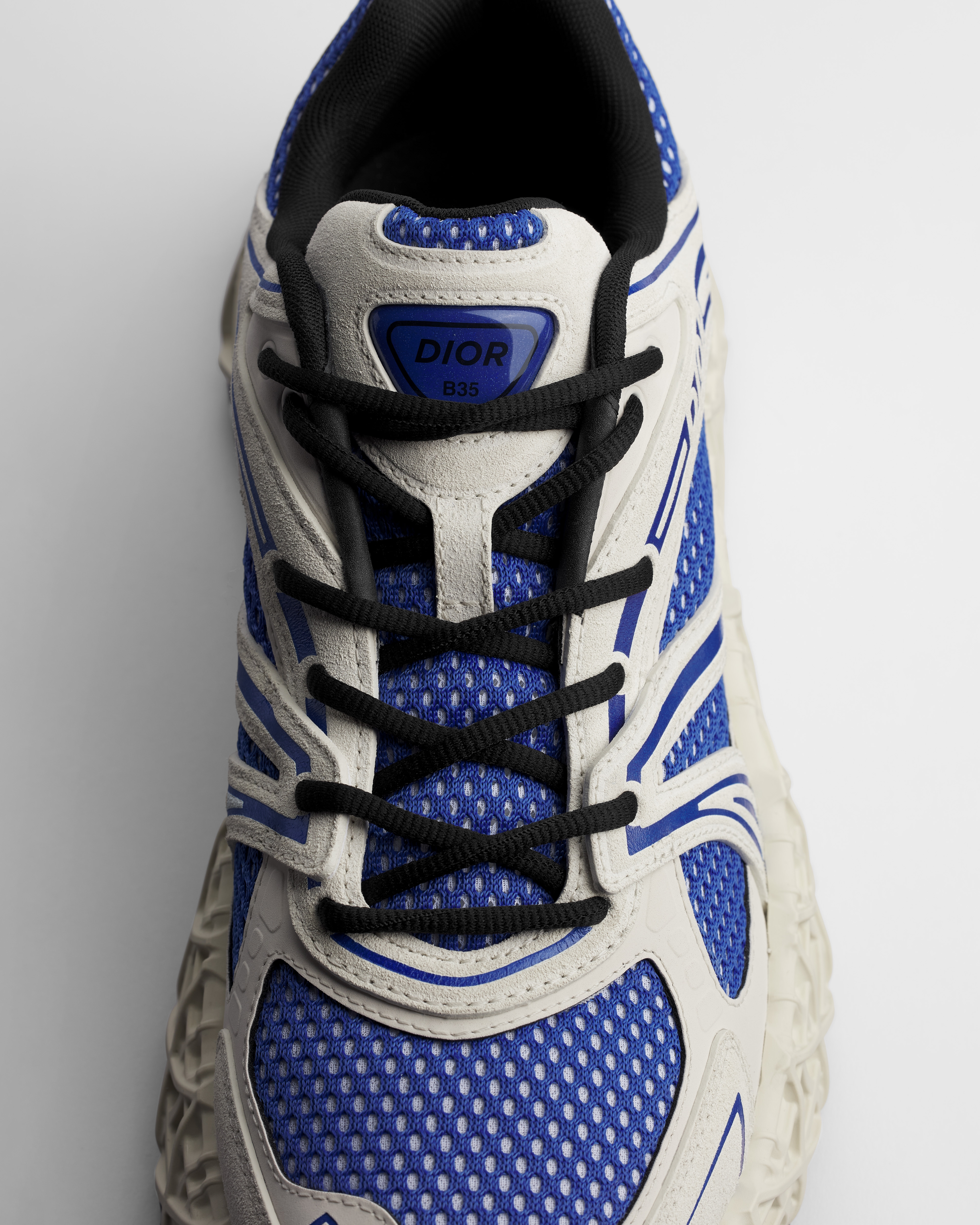 •  블루 스웨이드 카프스킨, 그레이 테크니컬 패브릭, 블루 테크니컬 메시
