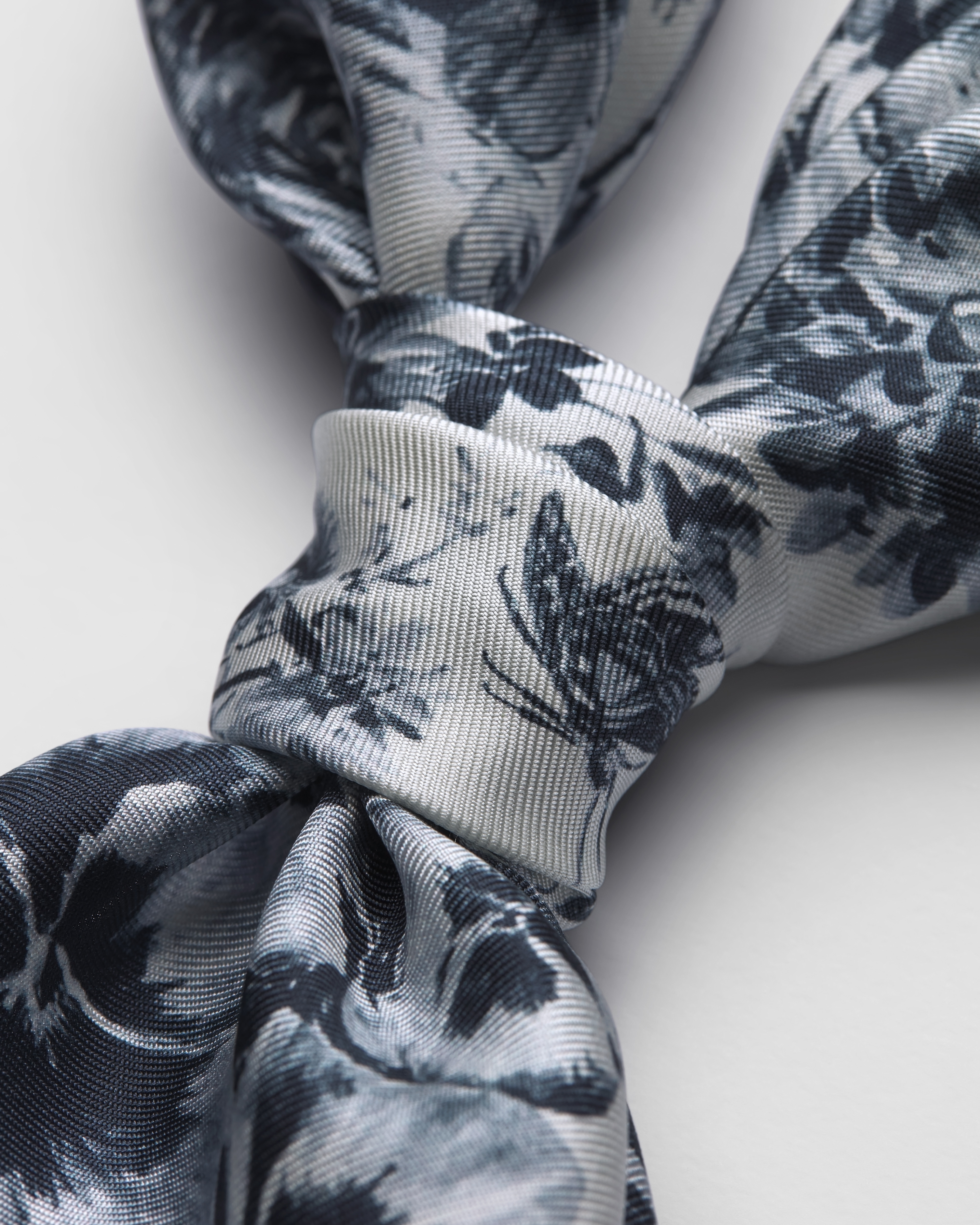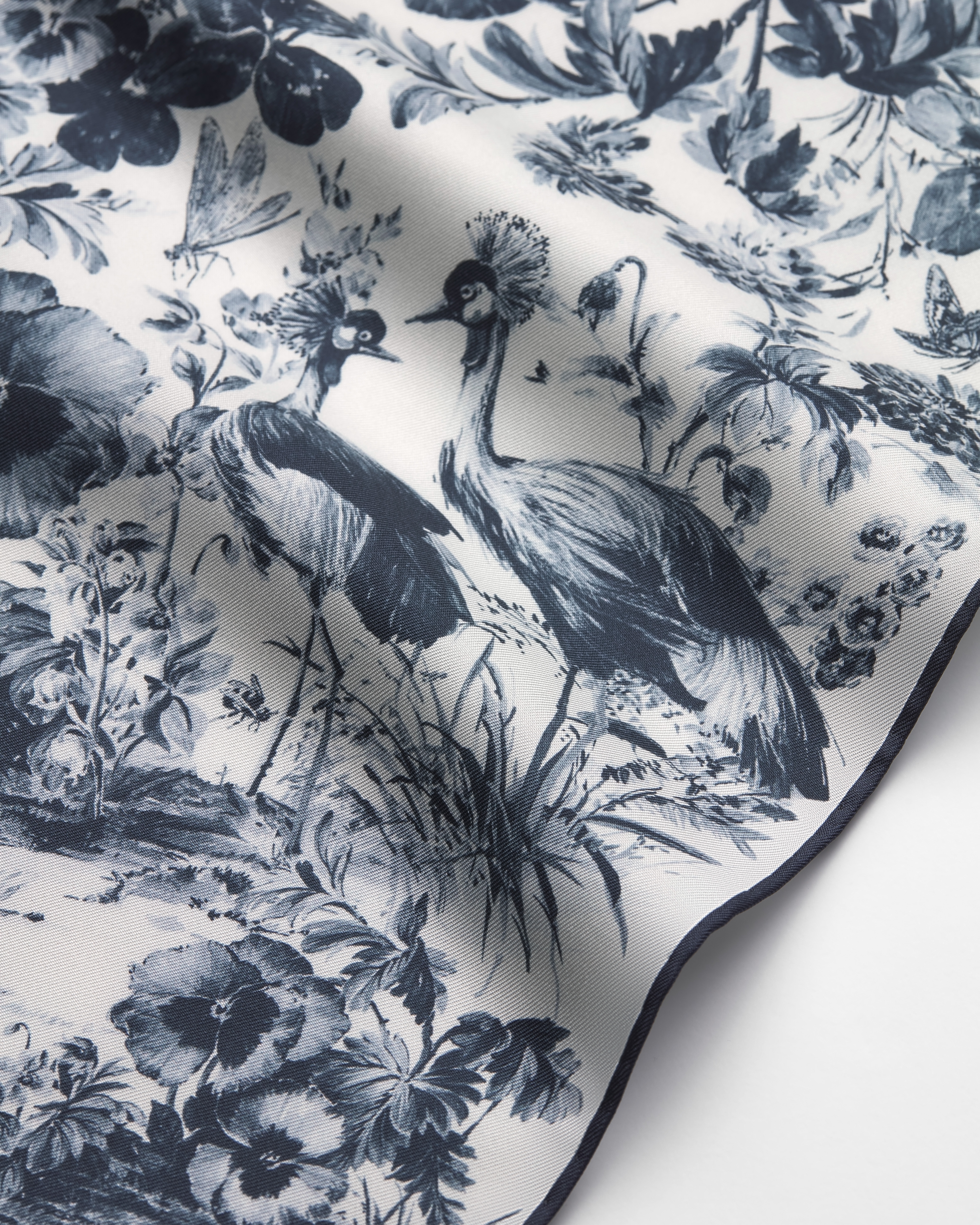 화이트 & 네이비 블루 실크 트윌