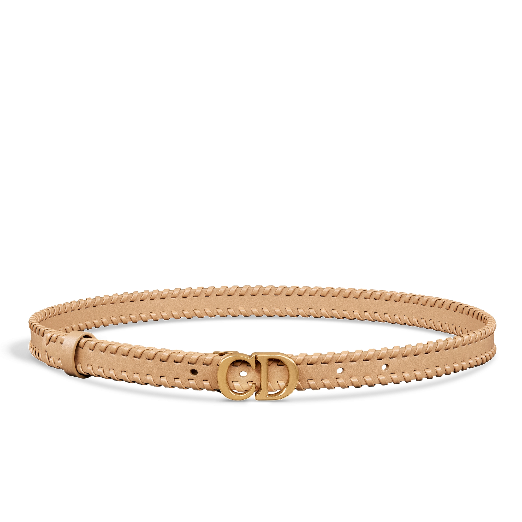 Soepel lichtgoudkleurig kalfsleer met leren overhandse stiksels, 20 mm