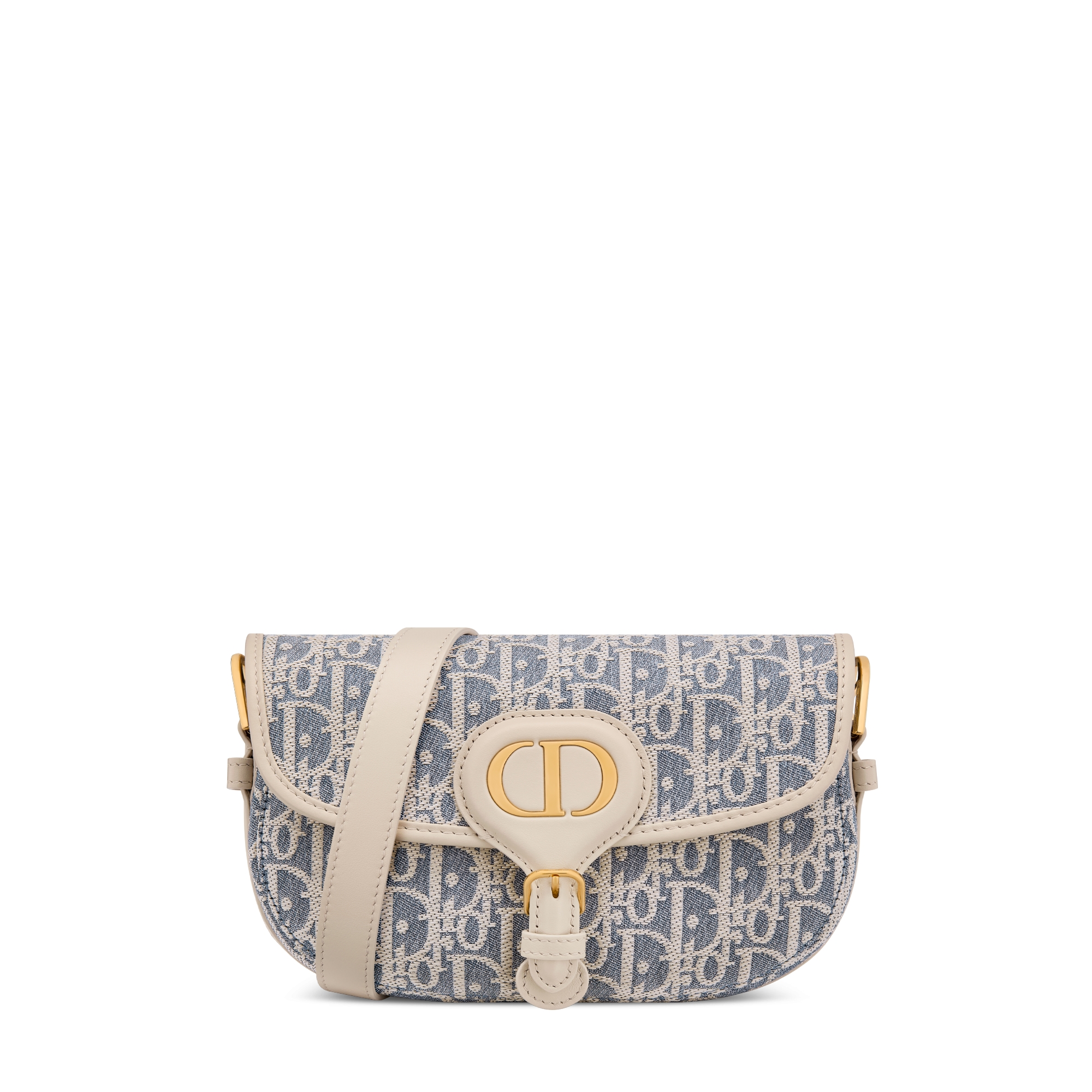Blauw Dior Oblique-chambray met raffia-effect en licht biscuitkleurig soepel kalfsleer