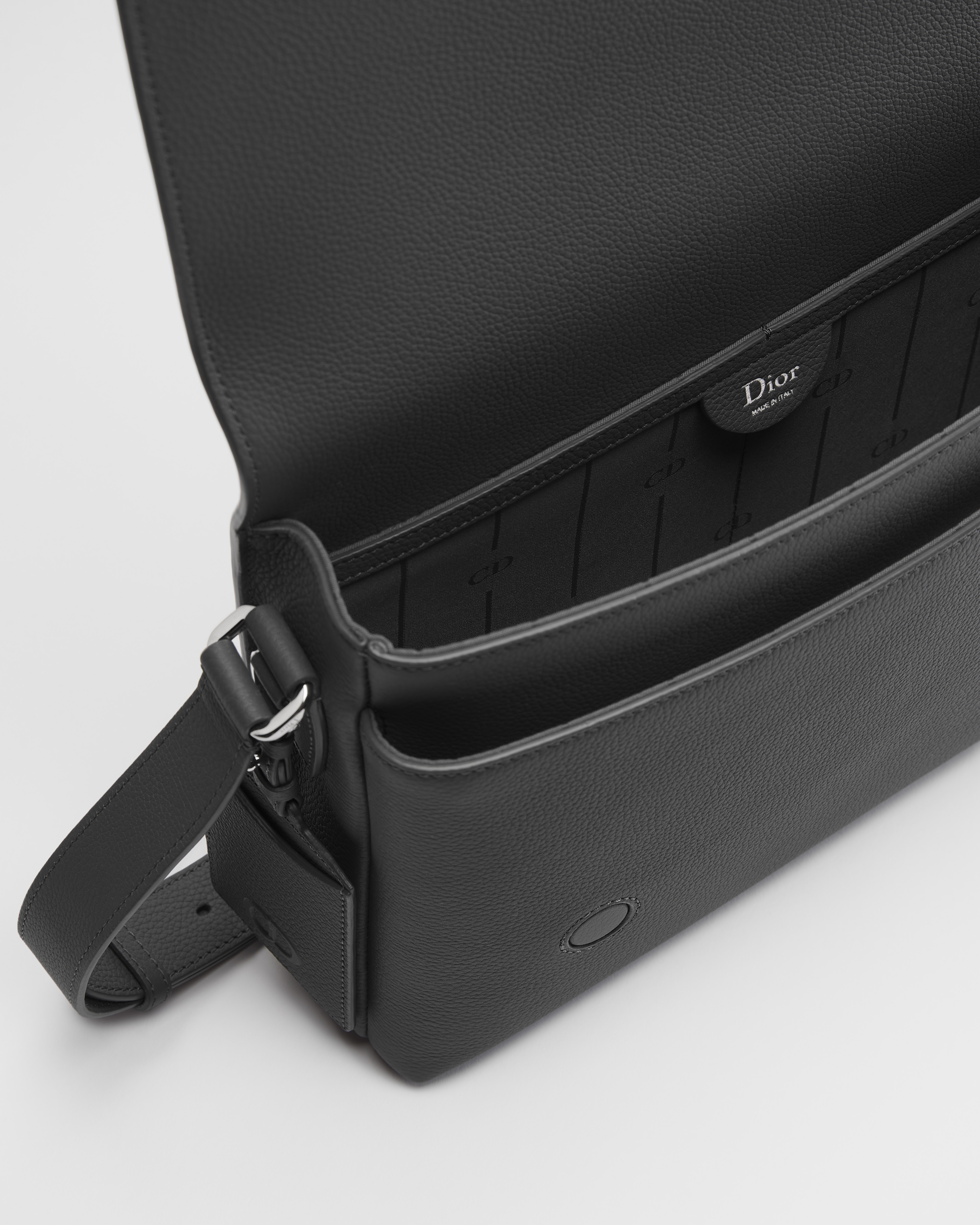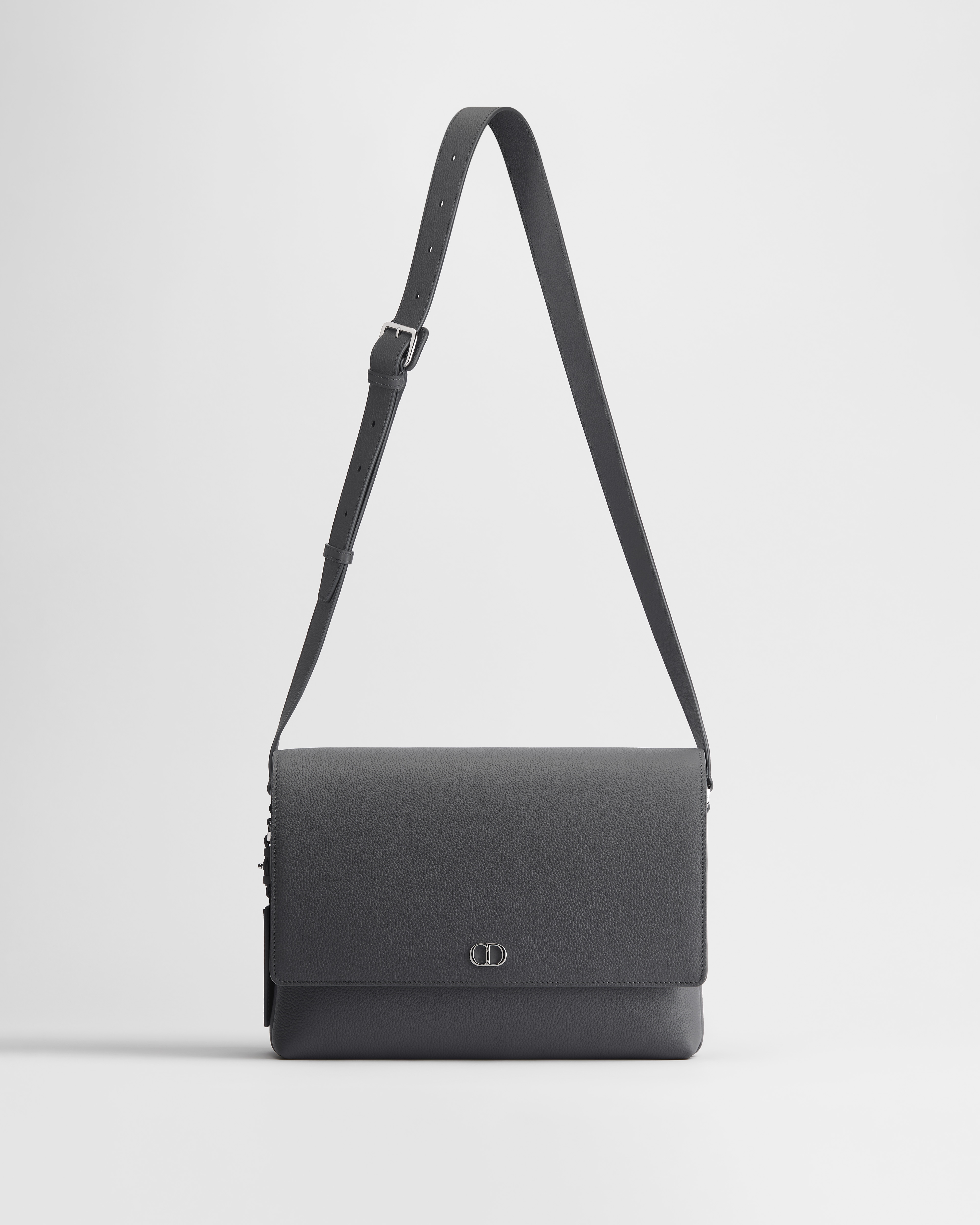 Esta bolsa messenger CD Icon com aba tem um design minimalista característico do savoir-faire excepcional da Maison. Confeccionada em couro de vitelo granulado cinza Gris Flanelle fosco, a peça é valorizada por uma inscrição CD Icon com acabamento em rutênio preto na frente e por um D-Ring com uma etiqueta para bagagem de couro realçada por uma inscrição CD em relevo. O modelo prático inclui um bolso aberto na frente e um atrás, enquanto o espaçoso compartimento principal, com forro CD inspirado no espírito de alfaiataria da Maison, pode acomodar os itens essenciais. Com uma alça ajustável que permite usá-la no ombro ou transpassada, a bolsa messenger atemporal combina com qualquer look.