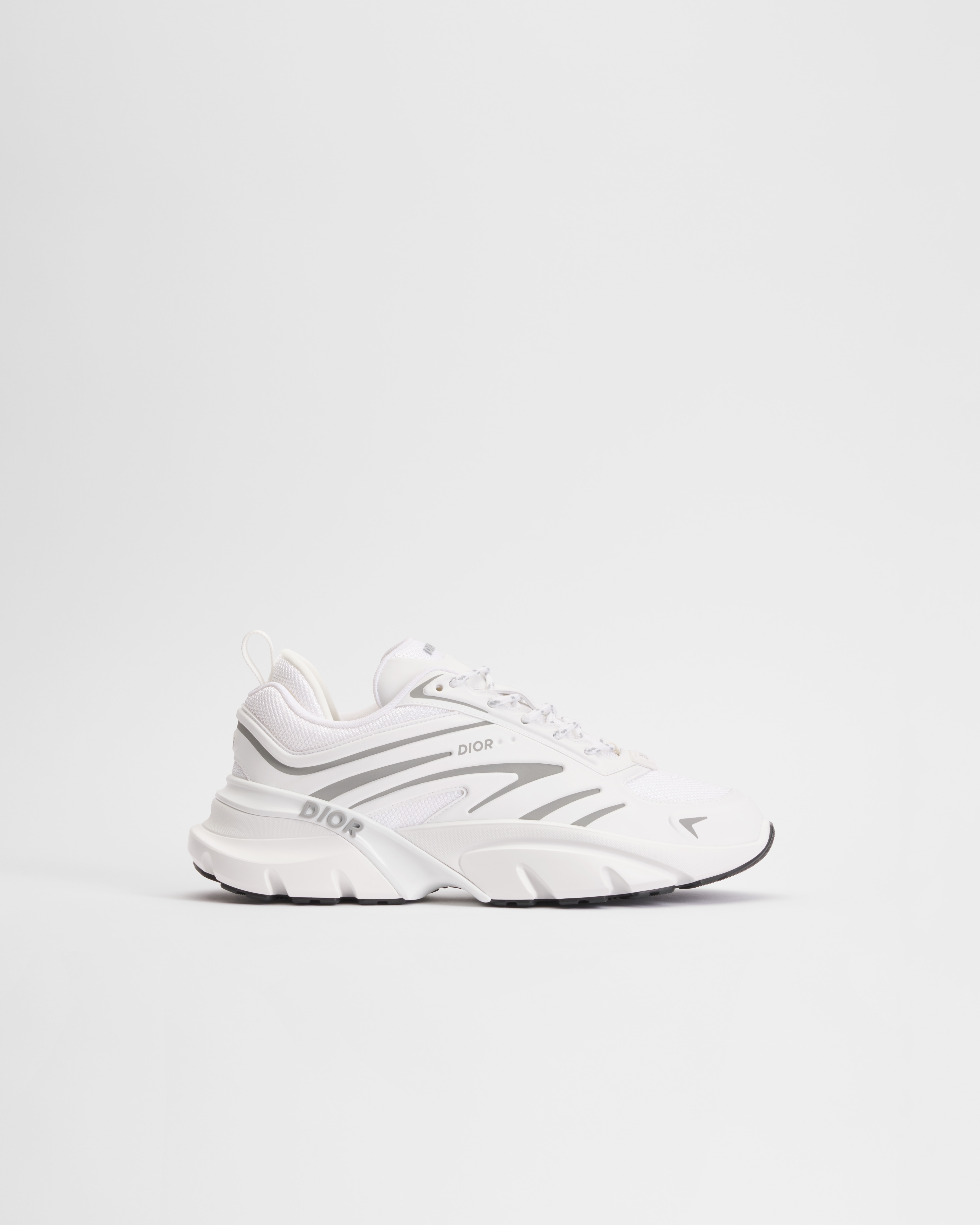 O sneaker B44 Blade é caracterizado por um design volumoso ousado inspirado nos anos 2000. Confeccionado em tela técnica branca, ele exibe telas de tecido técnico no mesmo tom e uma inserção Blade contrastante na sola, que faz referência ao universo da corrida. O cabedal, o contraforte e as laterais são valorizados pela inscrição Dior. Finalizado com cadarços em duas cores e uma meia de suporte que realça sua estética esportiva, o sneaker valoriza os looks casuais com um toque ultramoderno.