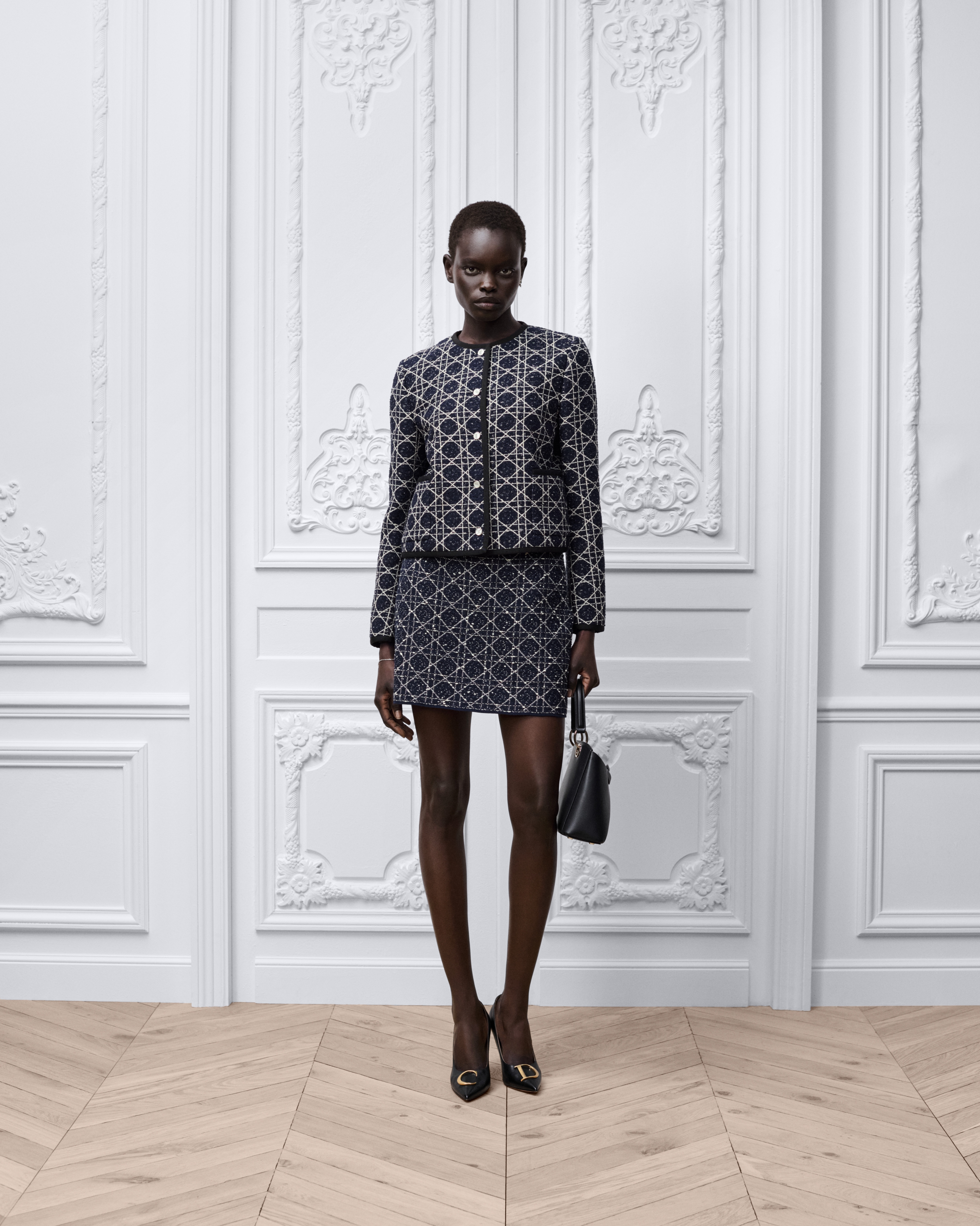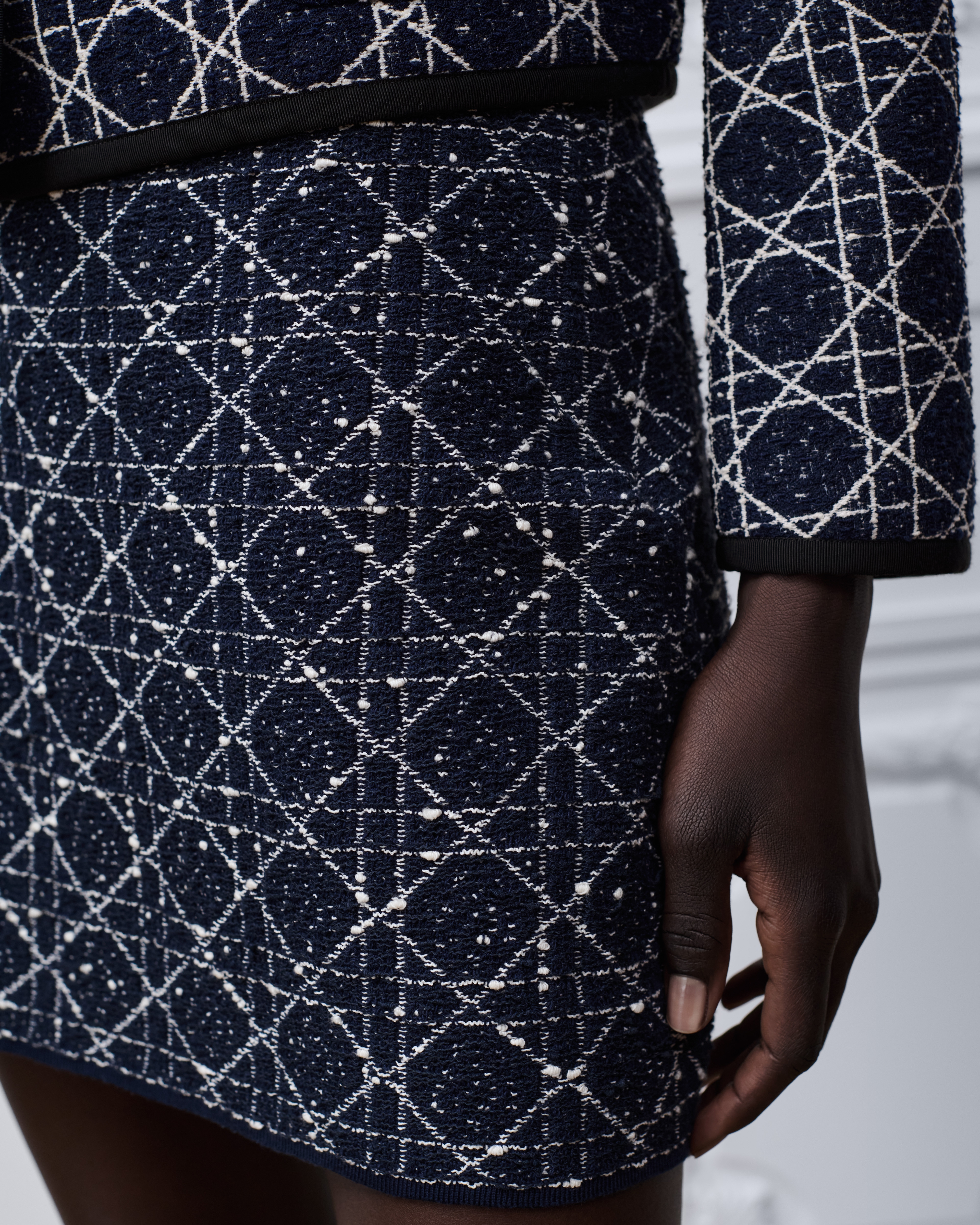 A modelo mede 178 cm e o item mostrado é tamanho 36 (FR)