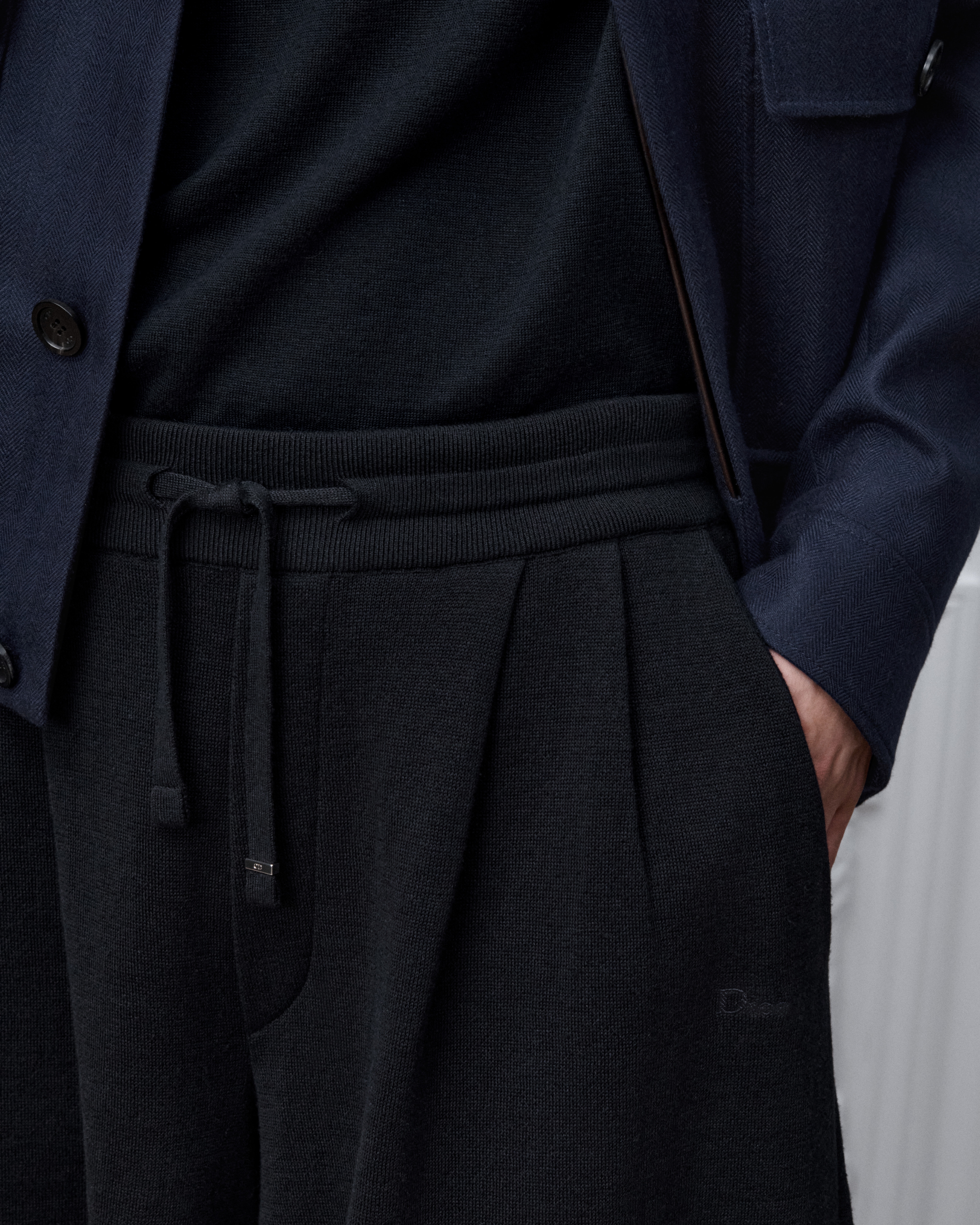 Fechamento com zíper duplo e puxadores com a inscrição Dior