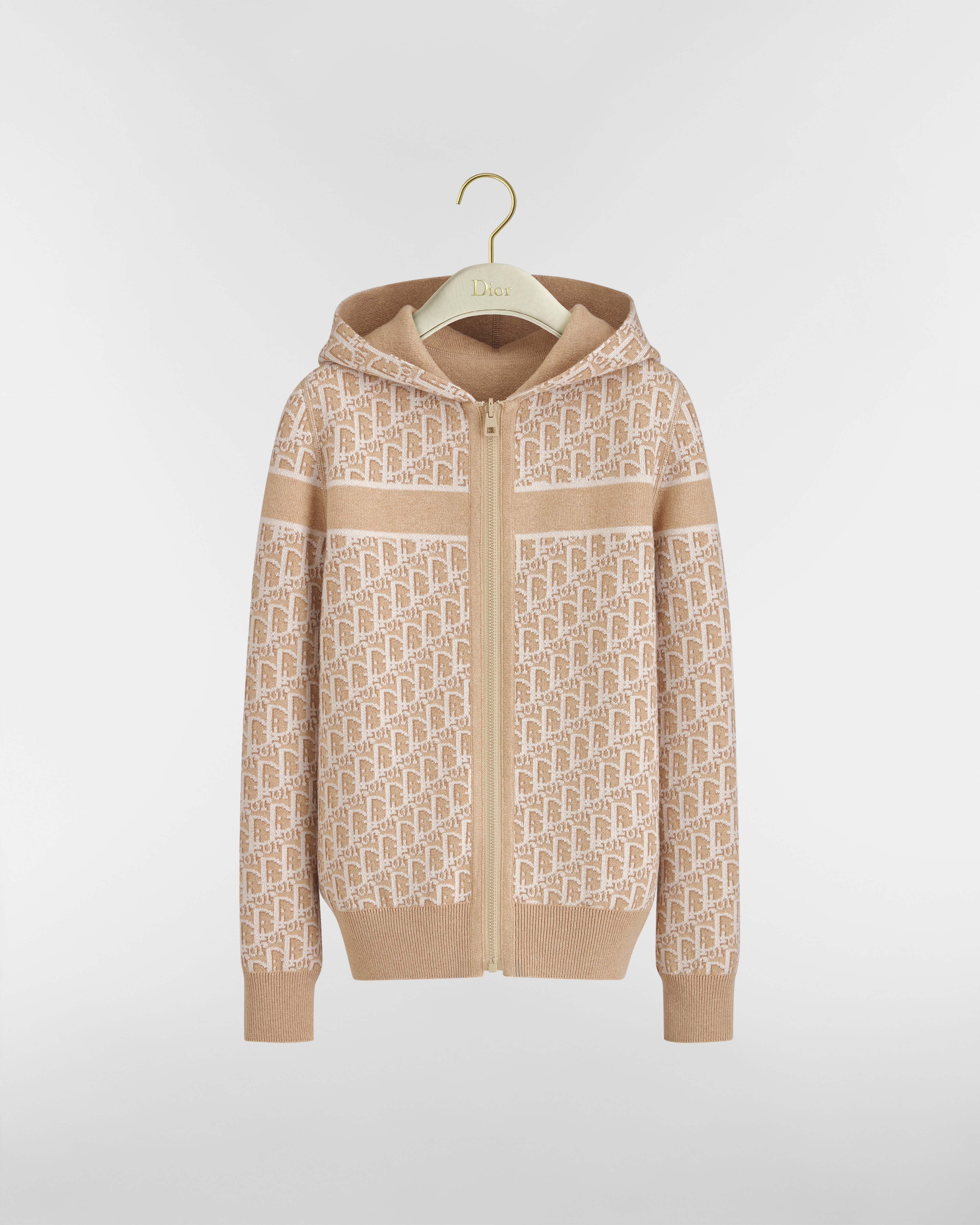 งานถักผ้าแคชเมียร์ผสมสีเบจประดับลวดลาย Dior Oblique
