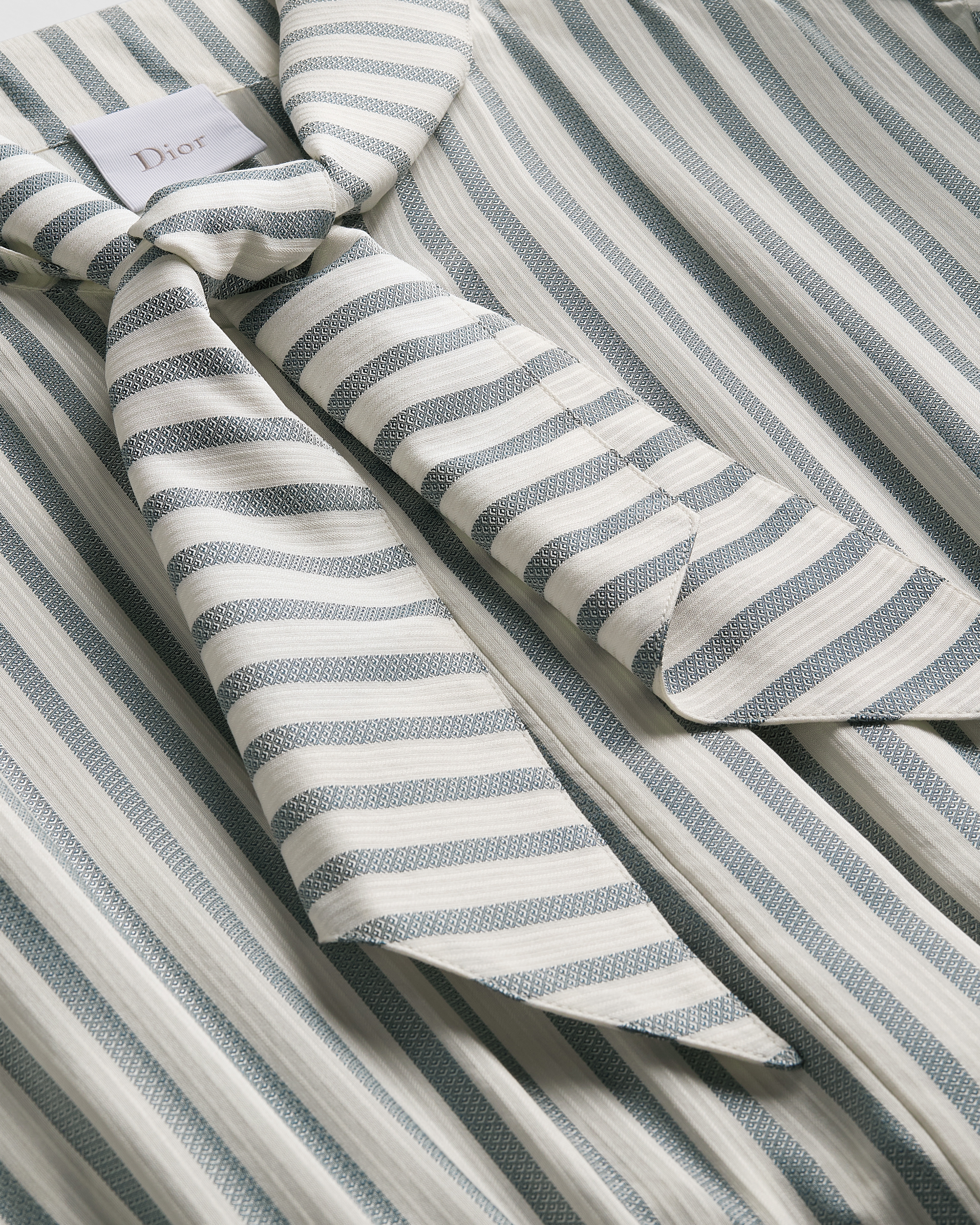ผ้าไหมแจ็กการ์ดลาย D-Stripes สีเทาและสีขาว