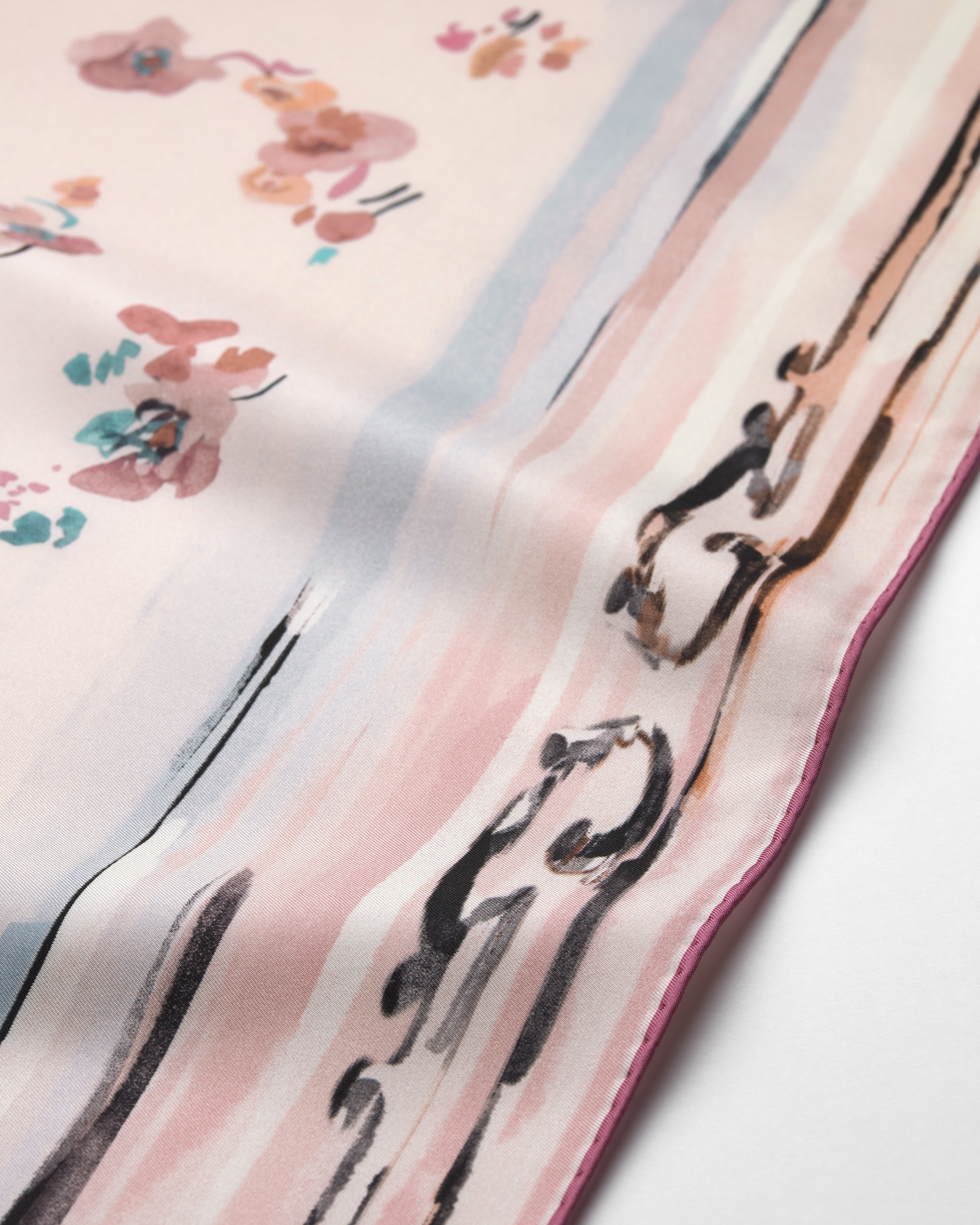 ผ้าไหมทวิลล์สีชมพูมัลติคัลเลอร์