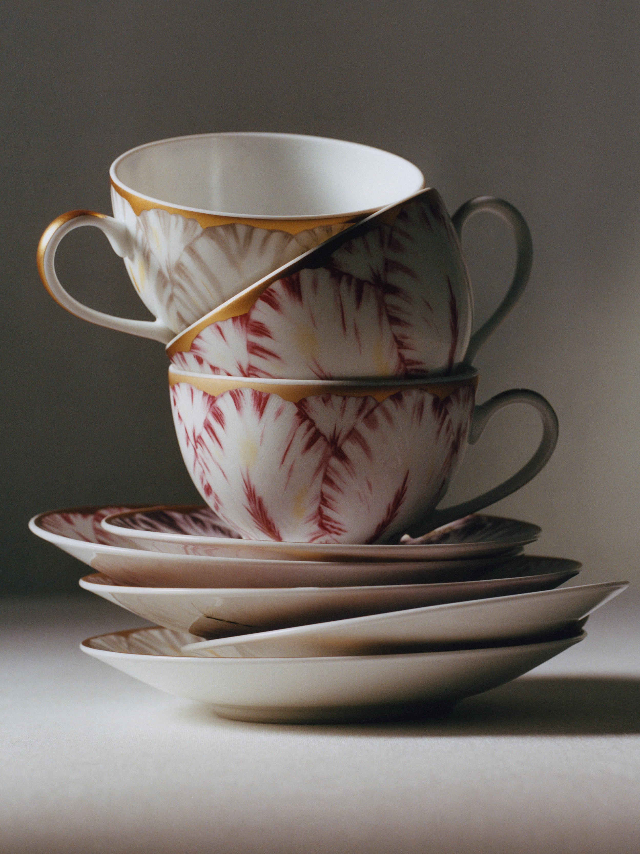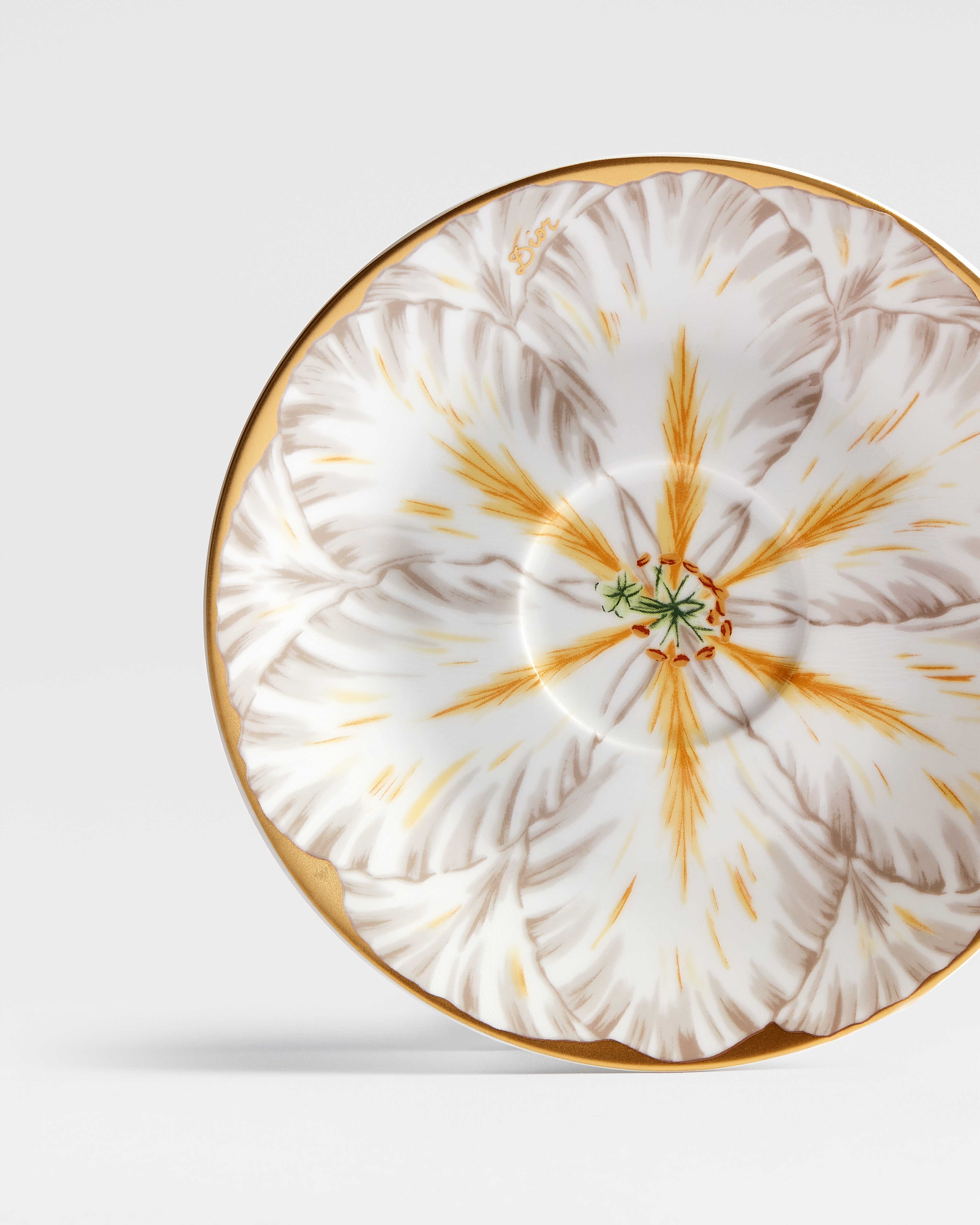 เครื่องเคลือบพอร์ซเลน Limoges ประดับลวดลาย Champs de Tulipes สีเทาและทอง 24 กะรัต