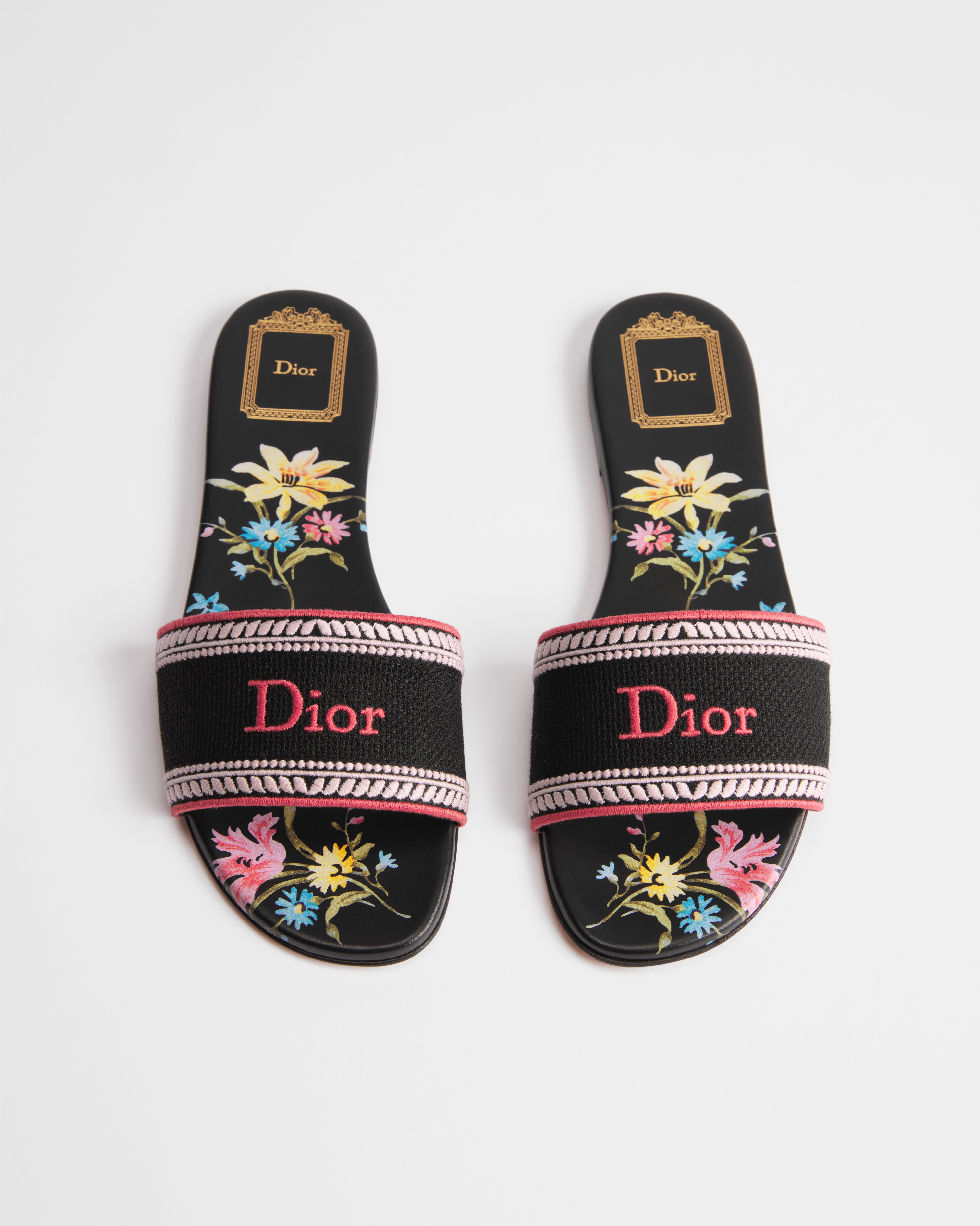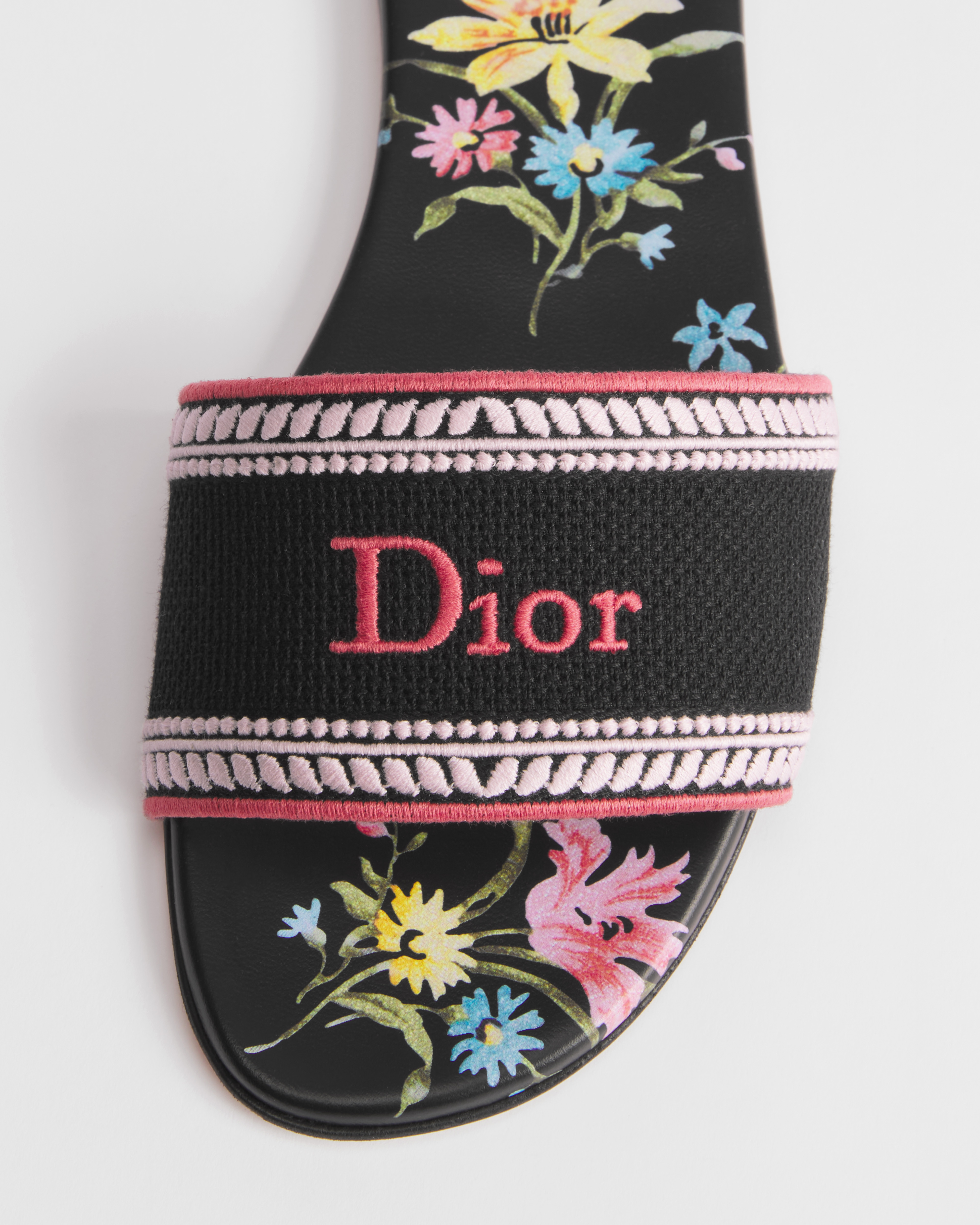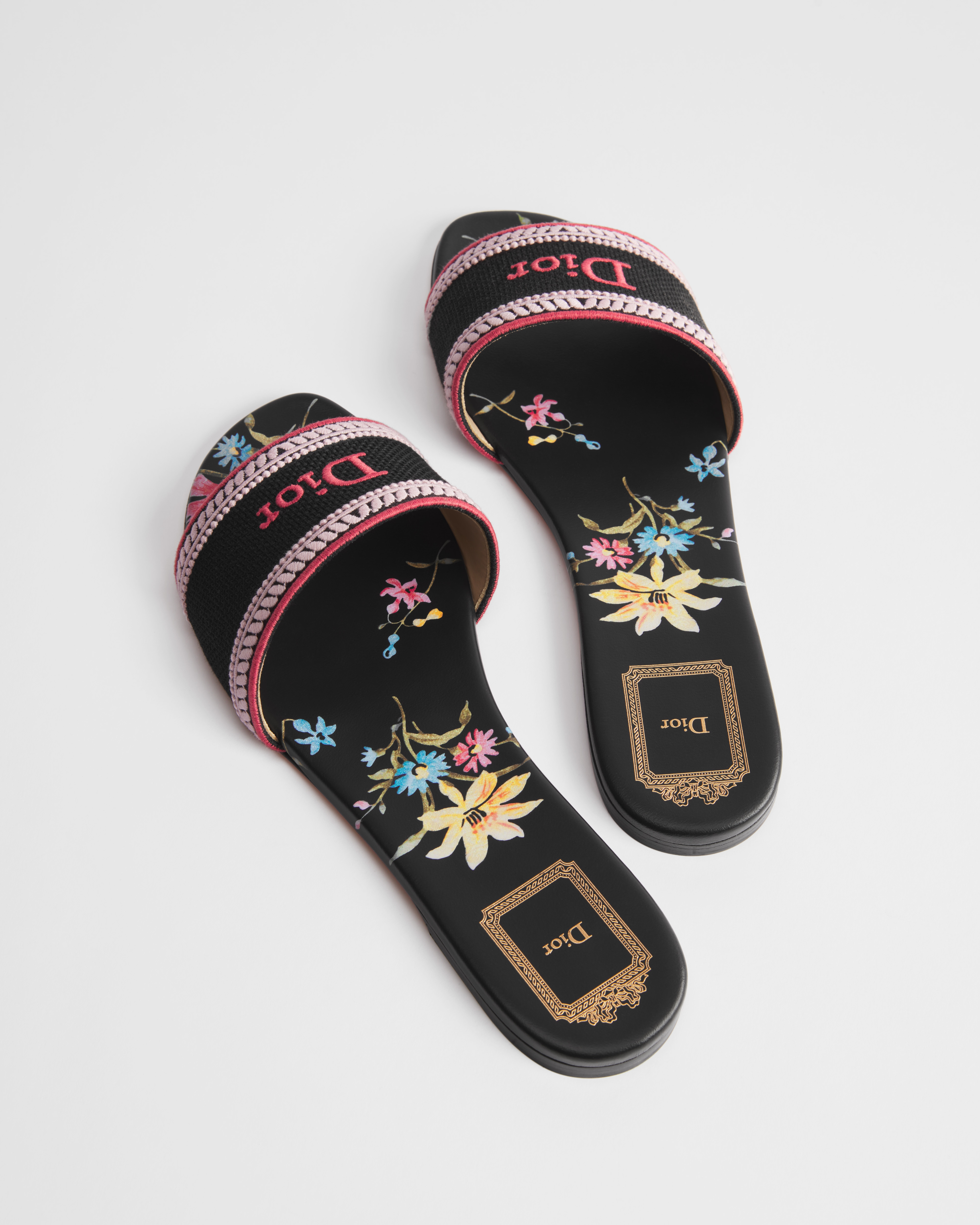 ผ้าฝ้ายปักลายสีดํา พร้อมลวดลาย Dior Secret Garden หลากสี
