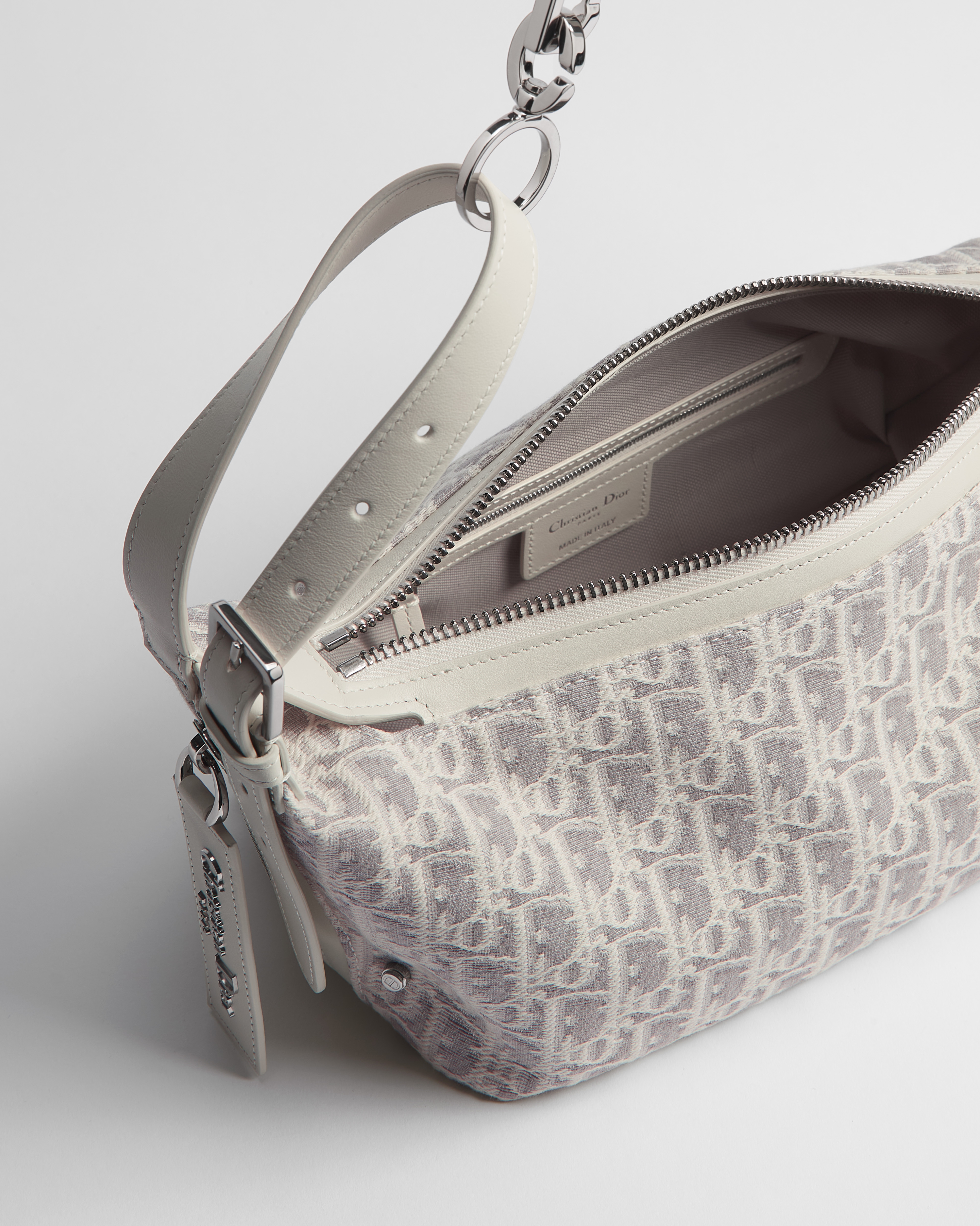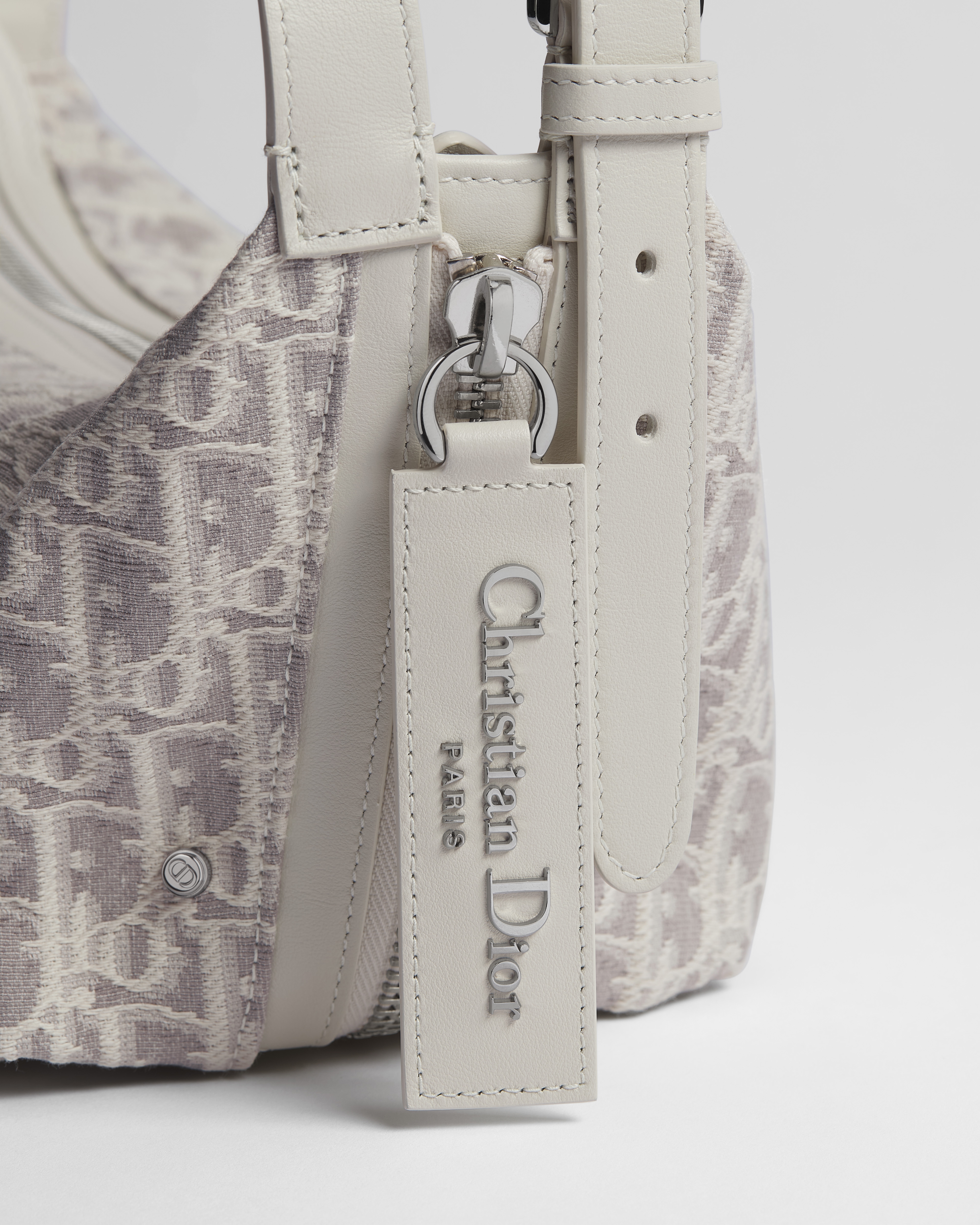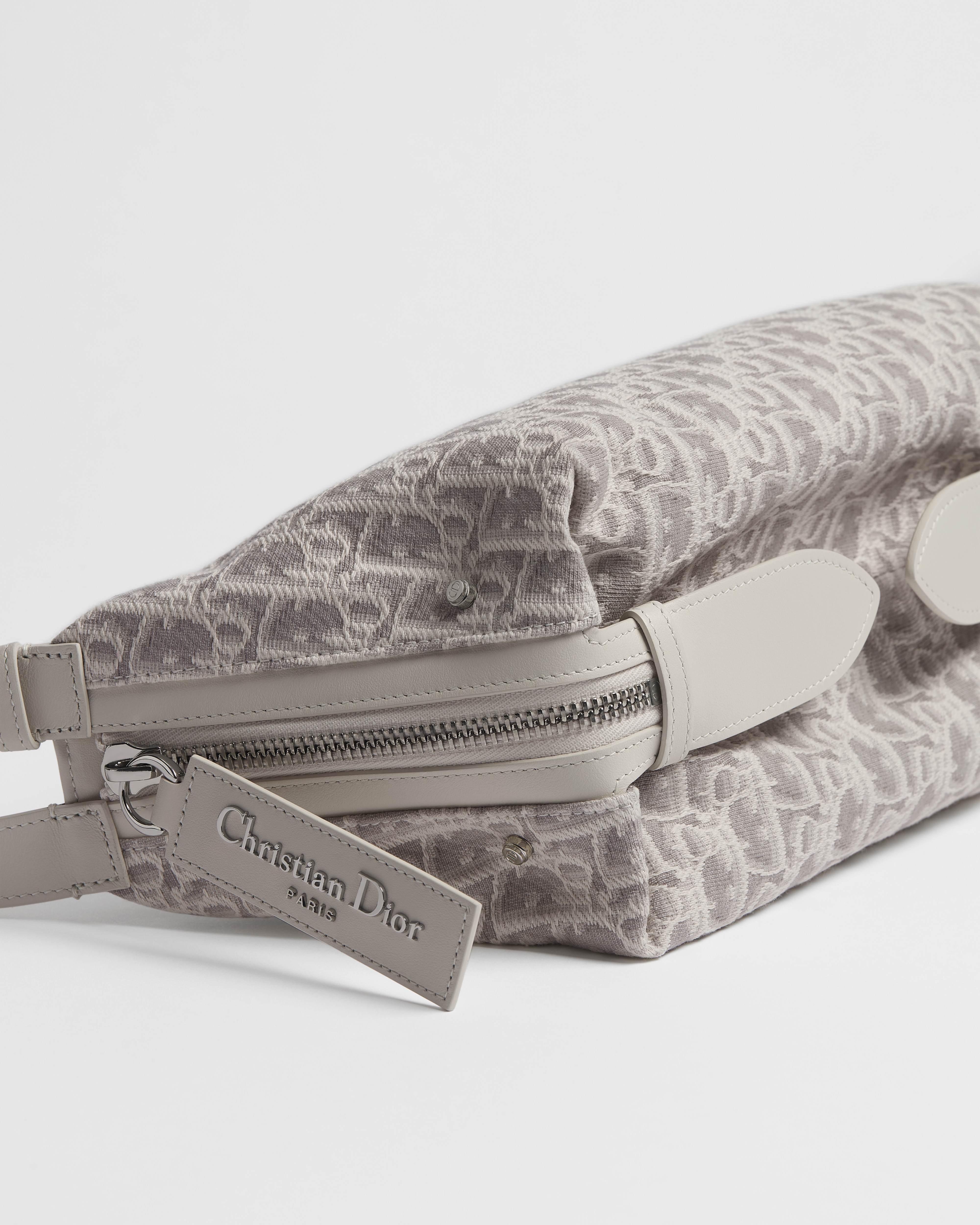 ผ้าแจ็กการ์ดลาย Dior Oblique สีขาวลาเต้และสีเทา