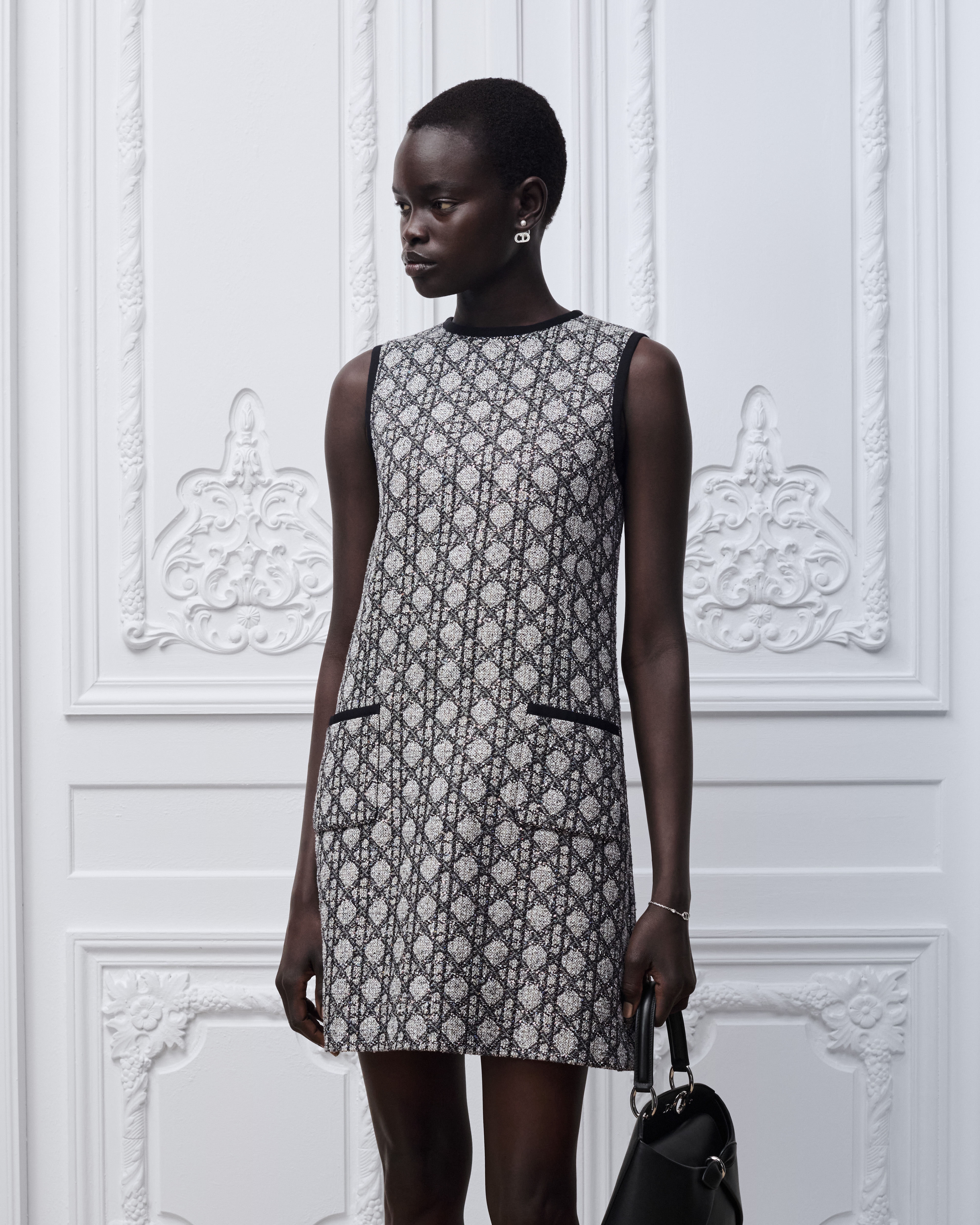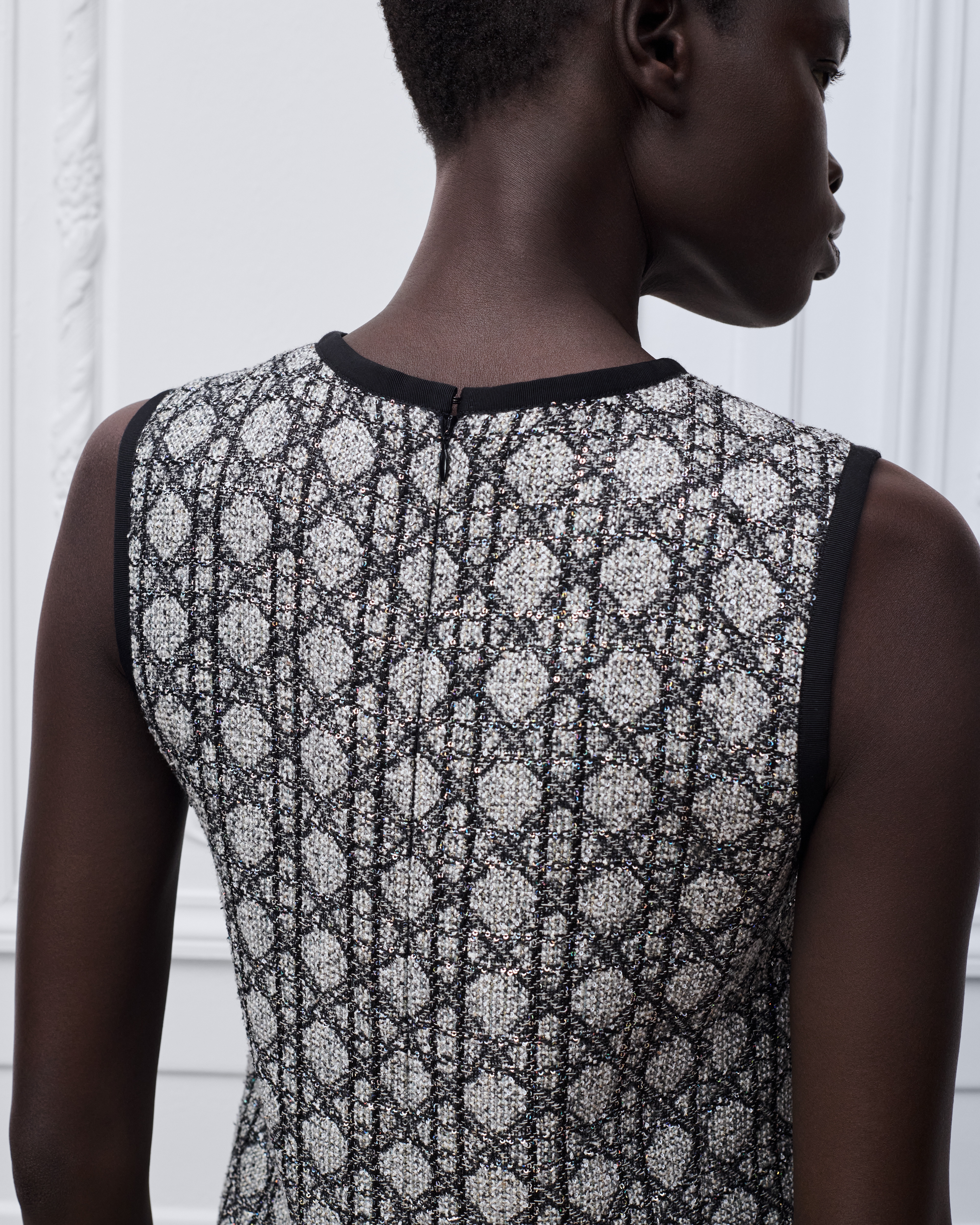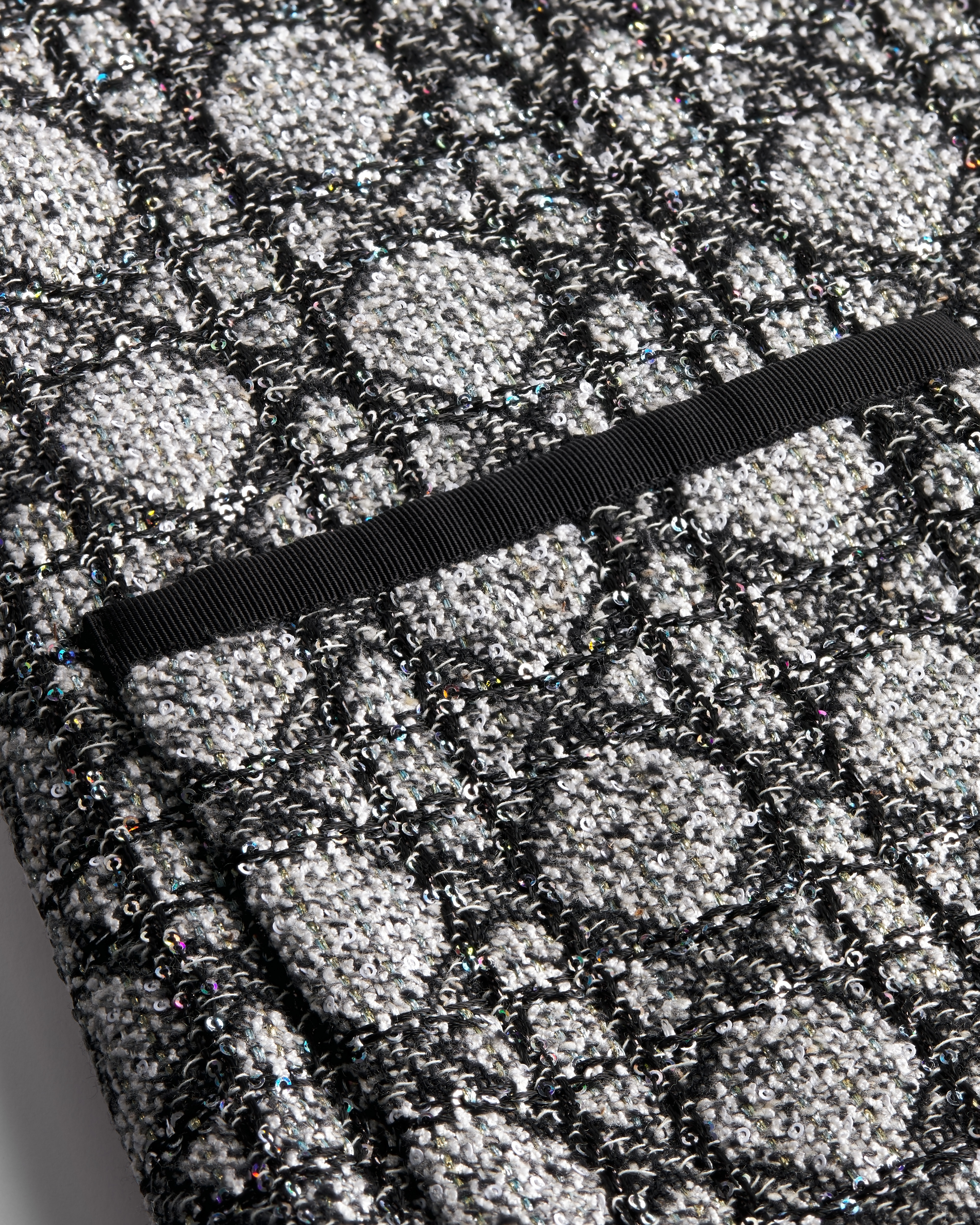拼色亮片刺繡的黑色和白色毛呢
