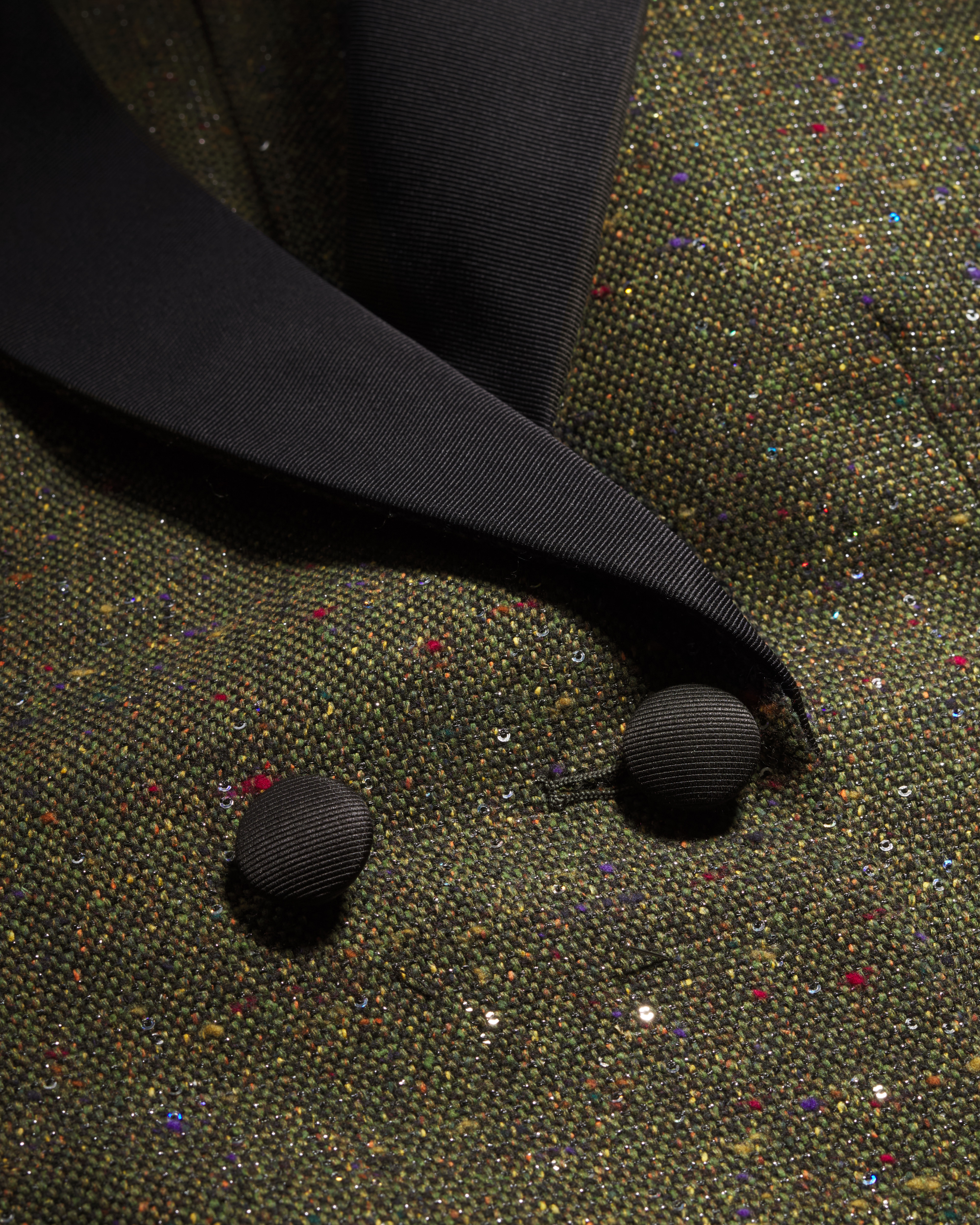 41% 絲綢、28% 精純羊毛、26% 聚酯纖維、3% 嫘縈、2% 金屬聚酯